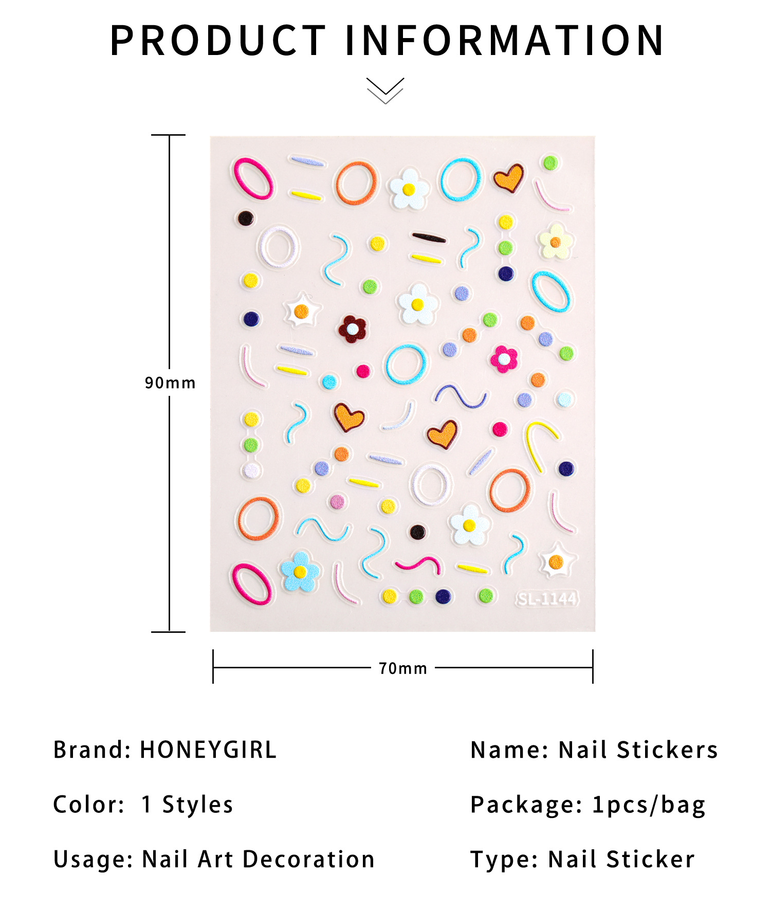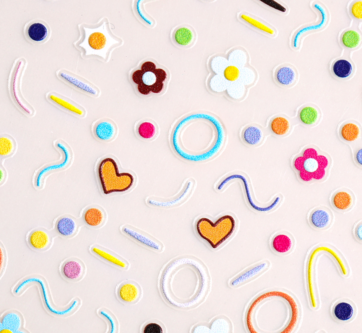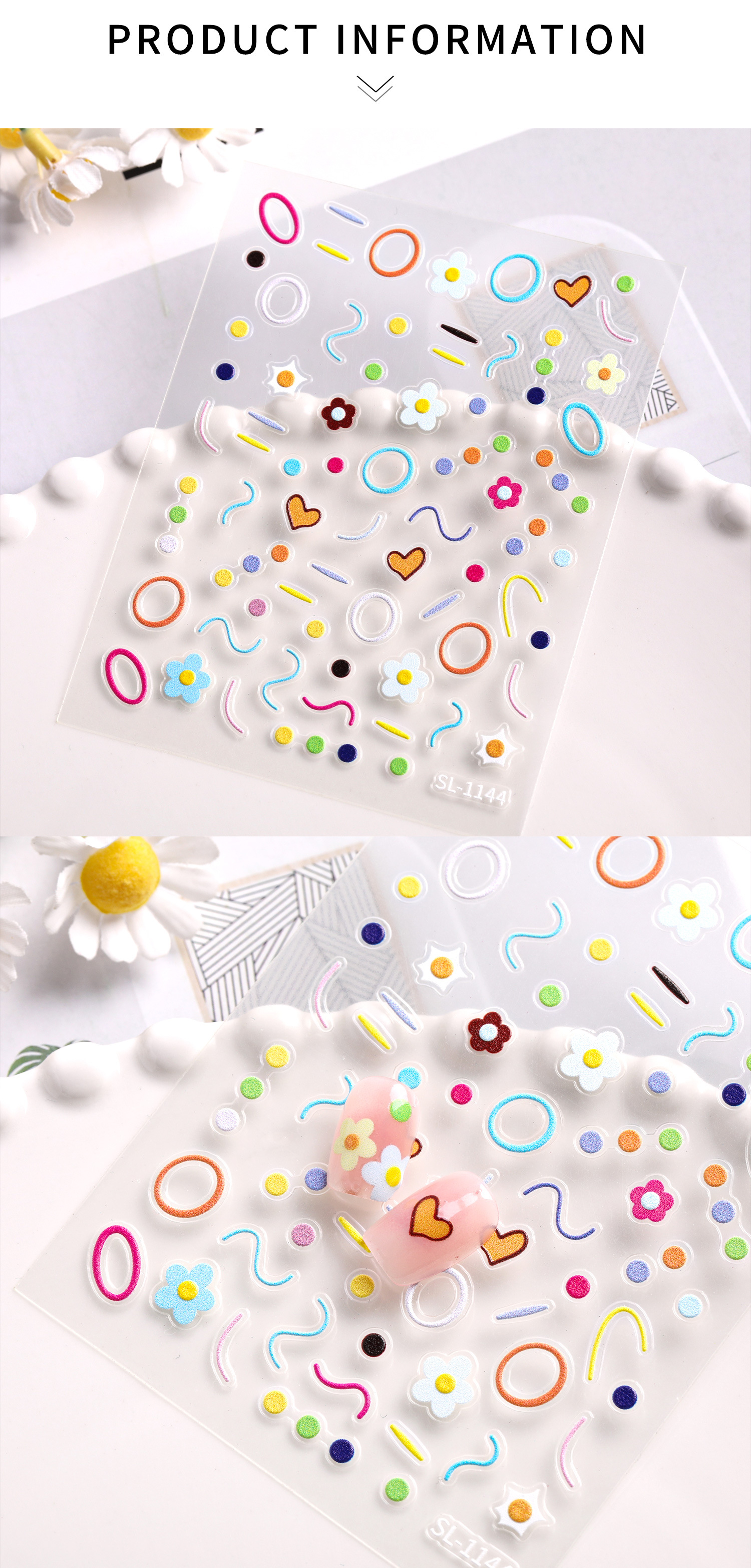 새로운 작은 도트 라인 나비 꽃 꽃 컬러 낙서 네일 아트 스티커 얇은 거친 도파민 3 차원 네일 아트 데칼