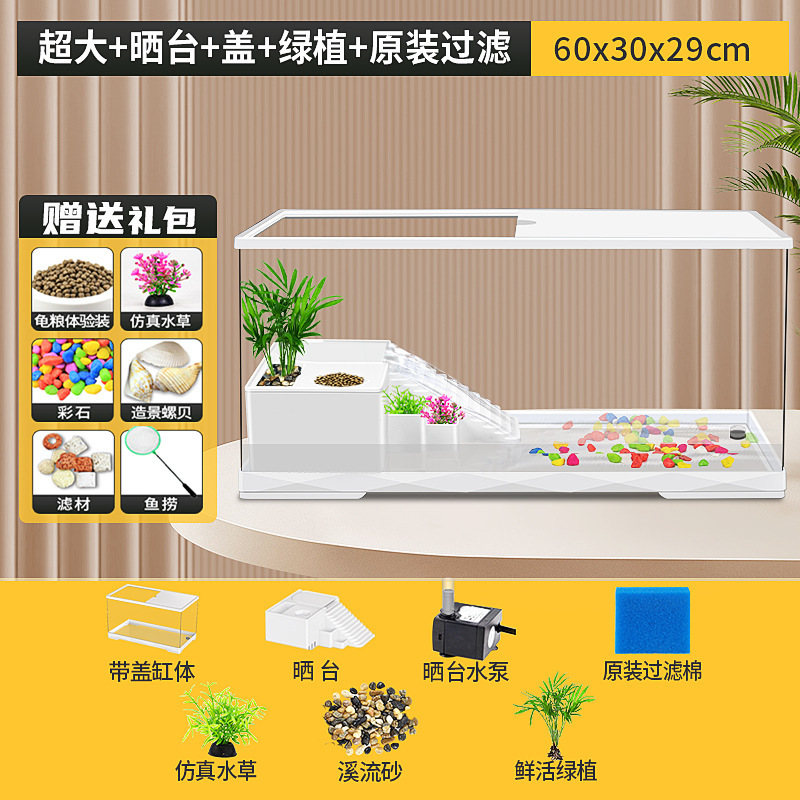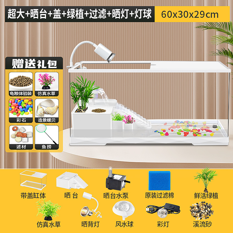 거북이 사육조, 뚜껑이 있는 소형 빌라, 소형 어항, 선베드가 있는 생태 조경, 등반대, 플라스틱 사육장