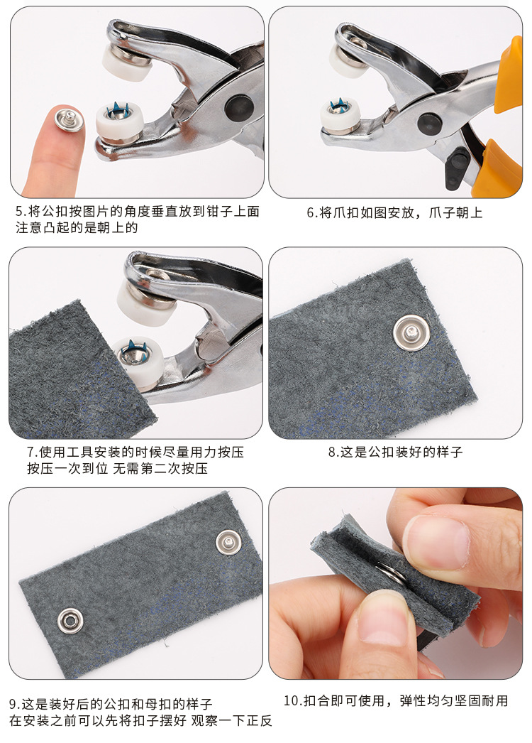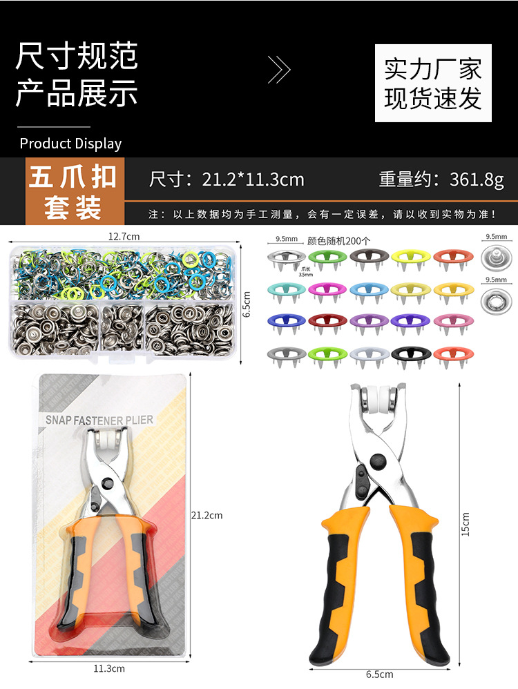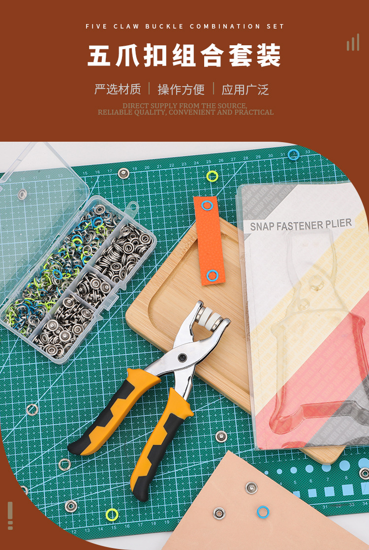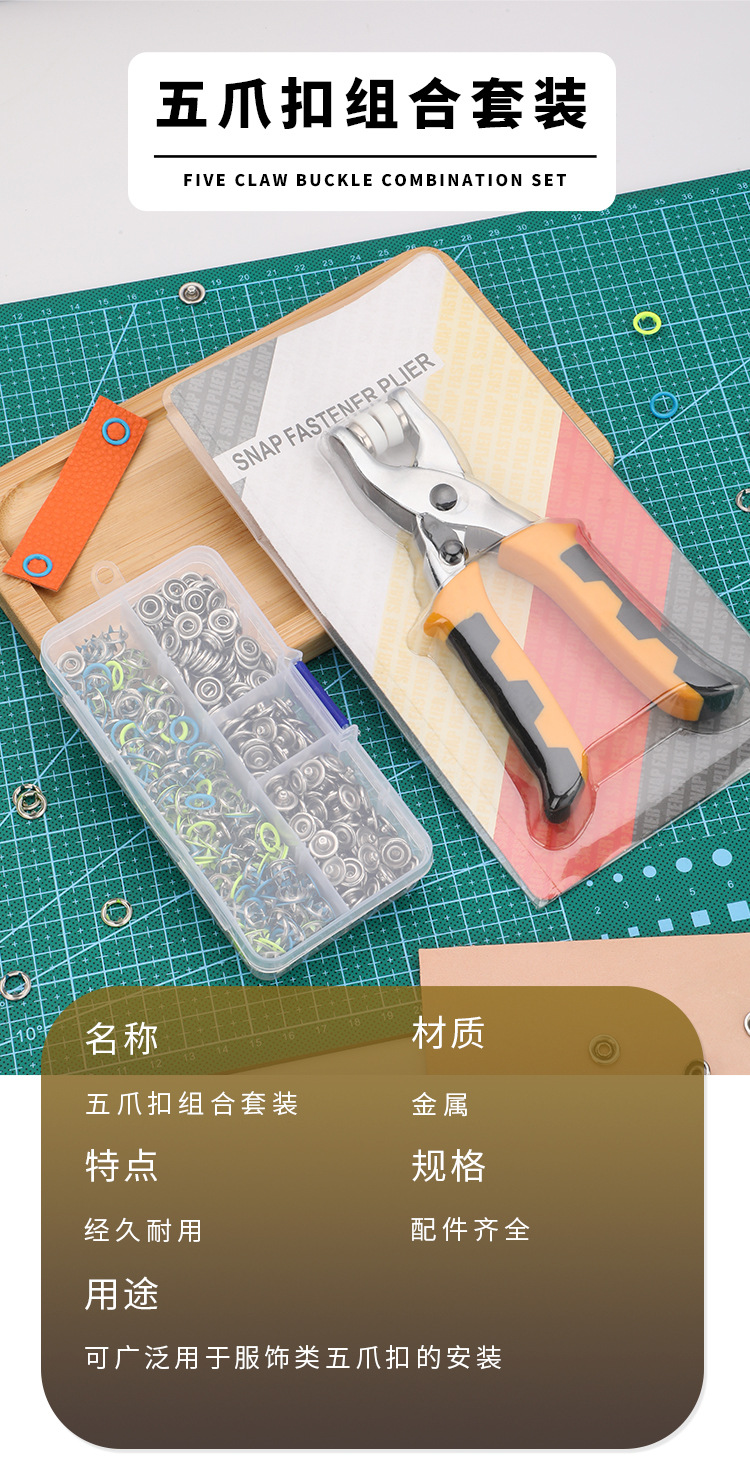 5발톱 핸드 클램프 + 5발톱 버클 세트, 숨겨진 버클 의류 버클 스냅 설치 도구, 버클 클램프 세트