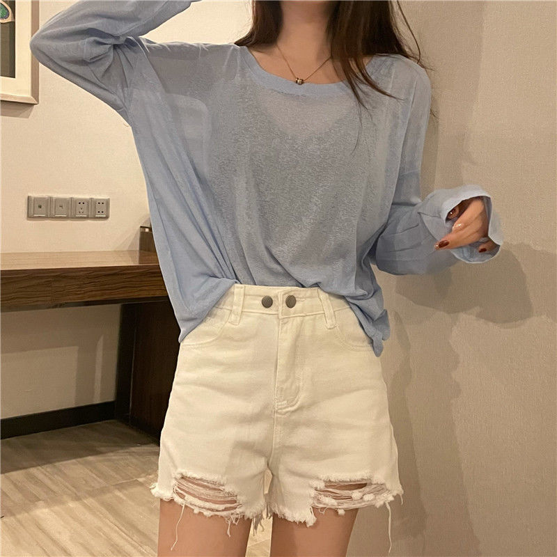 여름 2025 새로운 캔디 컬러 선스크린 셔츠 긴 소매 셔츠 여성용 올 매치 컬러 내부 얇은 탑스토어 가기