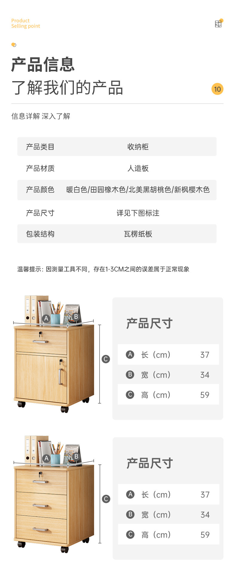 • BG003712 [도르래가 포함된 업그레이드된 4단 서랍] 패스토럴오크 컬러 37*34*65cm