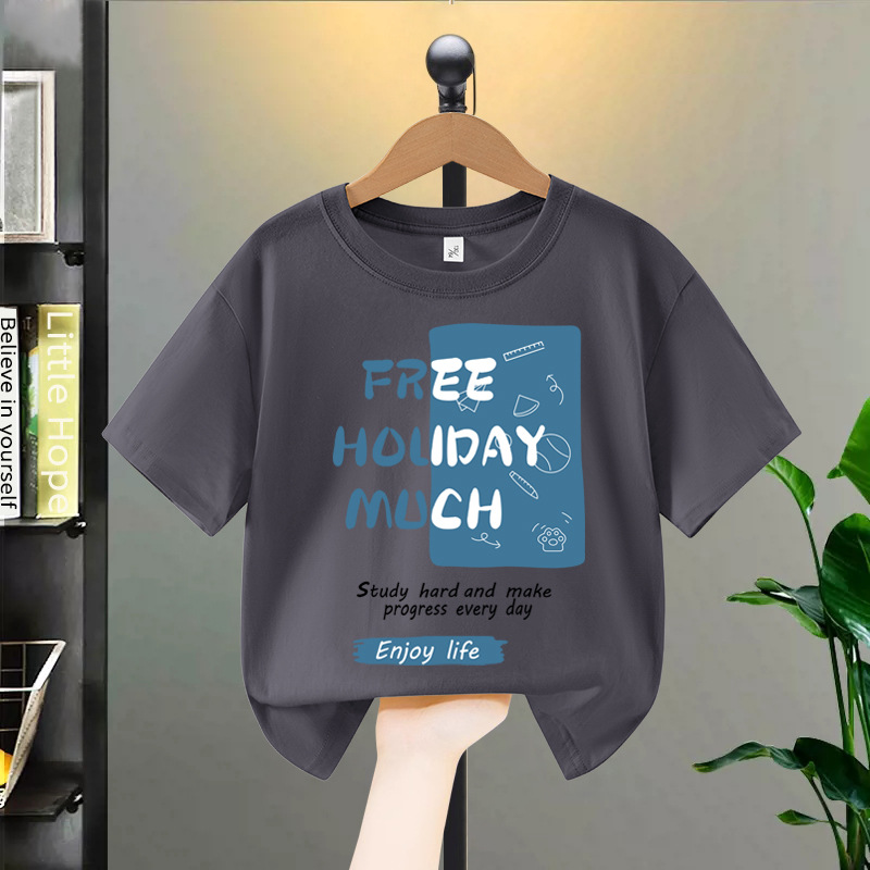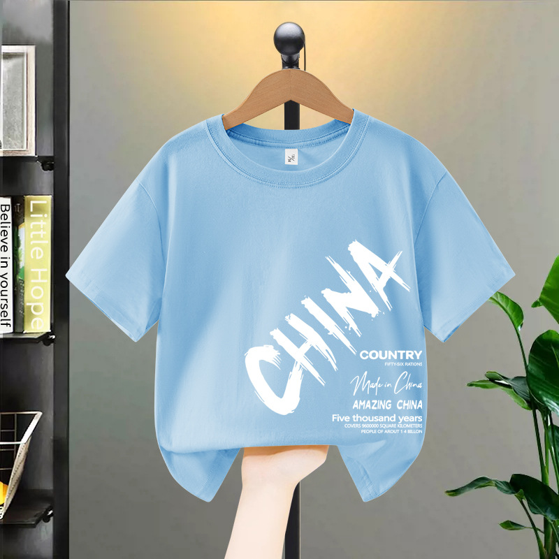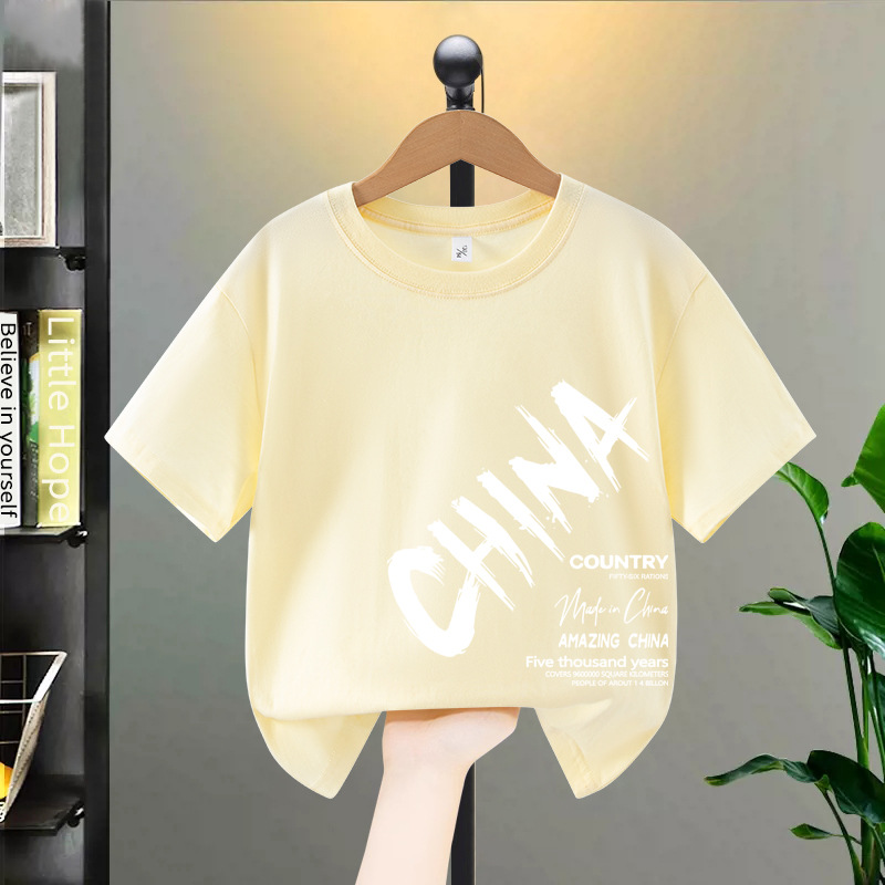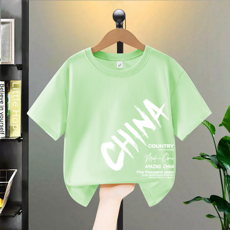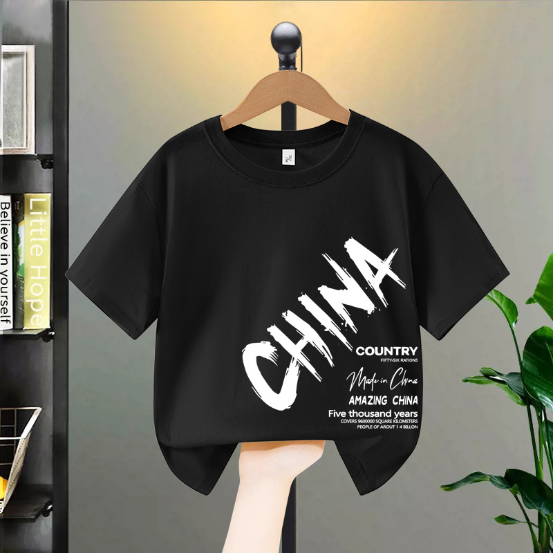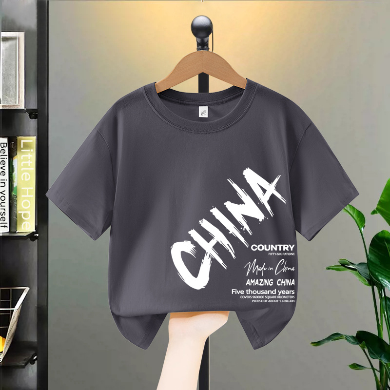 소년 반팔 티셔츠 여름 순수 코튼 2025 새로운 중대형 어린이 여름 옷 아동 의류 소년 멋진 아동복