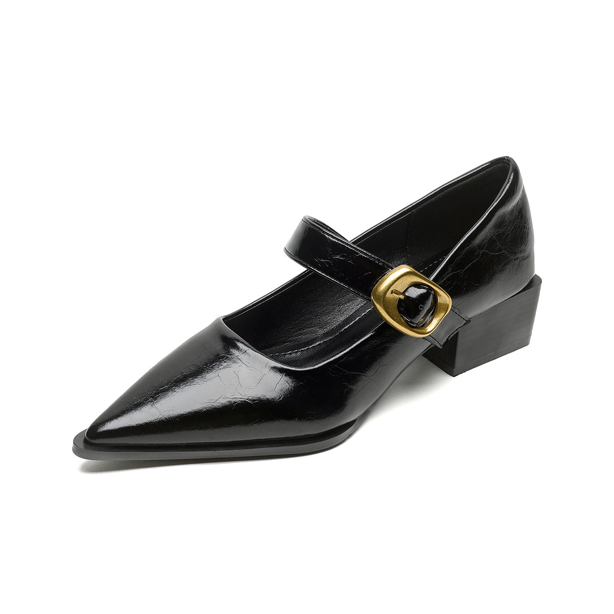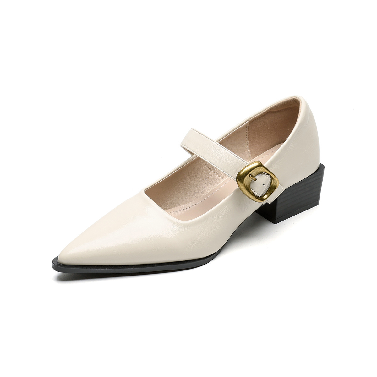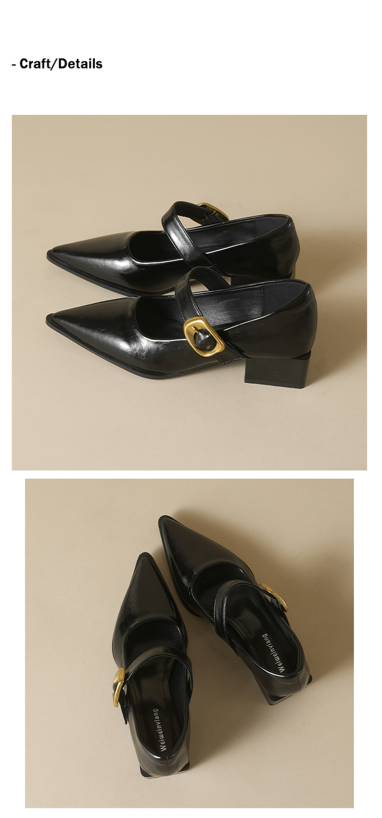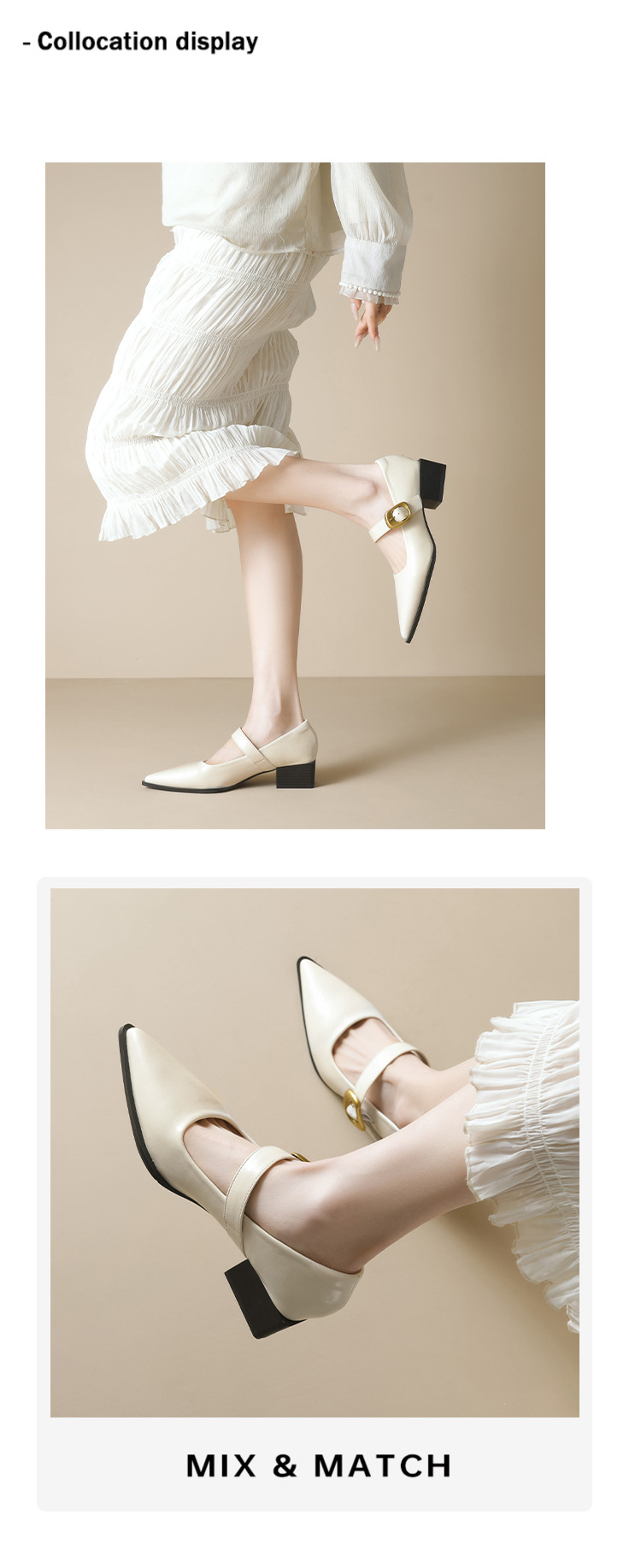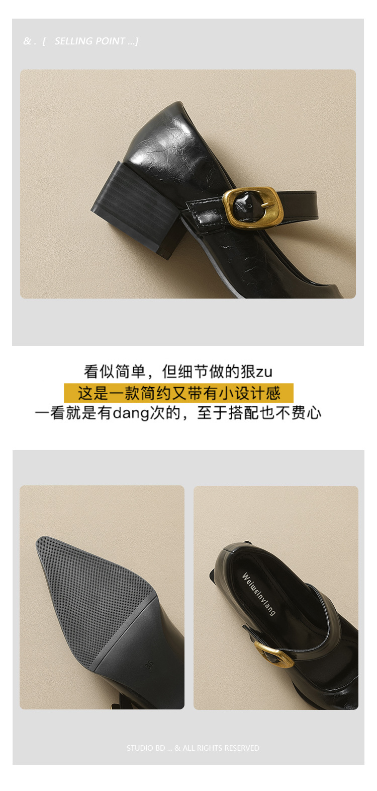 하이힐로 뾰족한 발가락 여성의 피곤하지 않은 발 기질 낮은 컷 두꺼운 발 뒤꿈치 Mary Jane 신발 여성 치마 플러스 사이즈 여성 신발스토어 가기