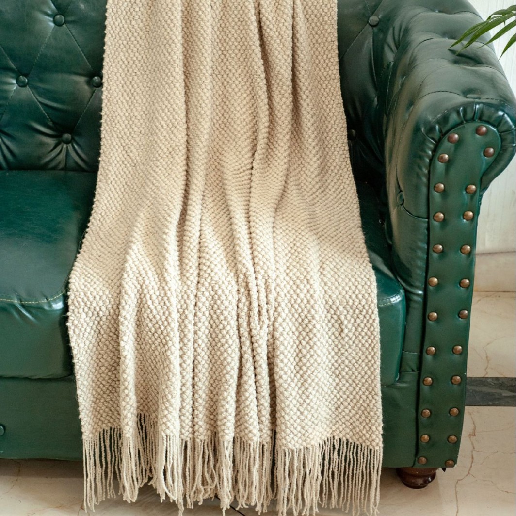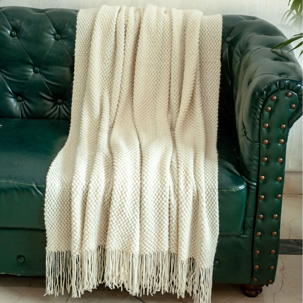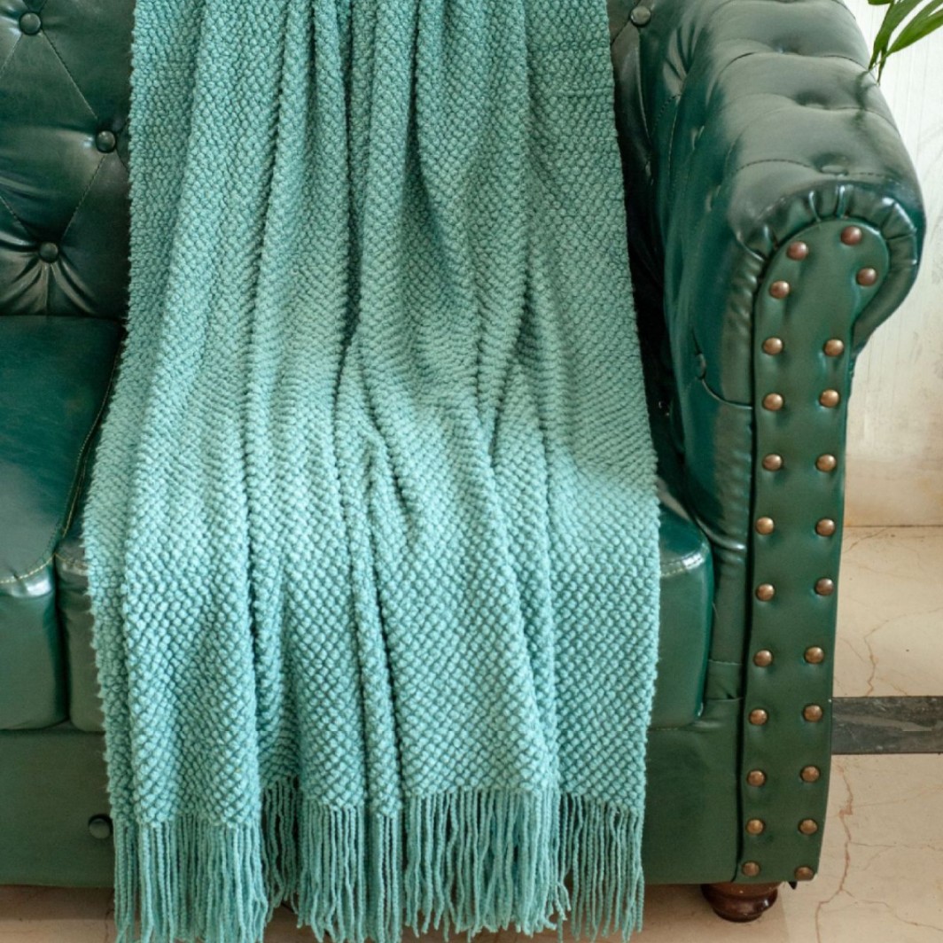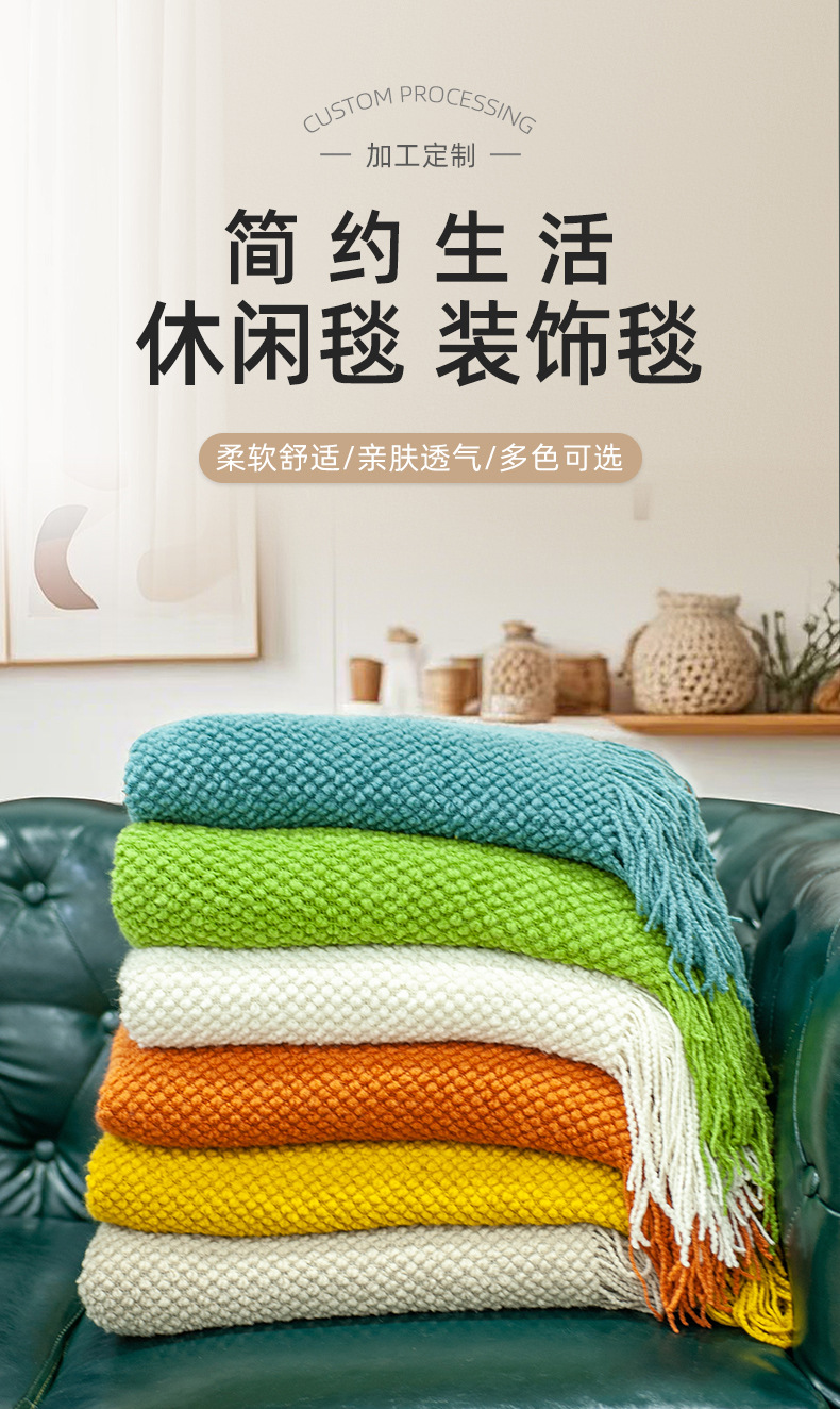북유럽 솔리드 컬러 술 소파 담요 홈스테이 호텔 침대 끝 사무실 낮잠 편안한 담요 에어컨 니트 담요