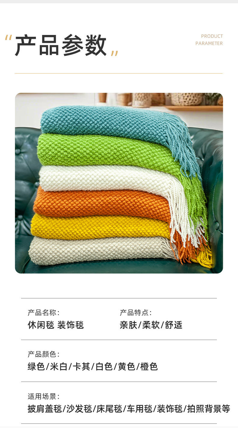 북유럽 솔리드 컬러 술 소파 담요 홈스테이 호텔 침대 끝 사무실 낮잠 편안한 담요 에어컨 니트 담요스토어 가기
