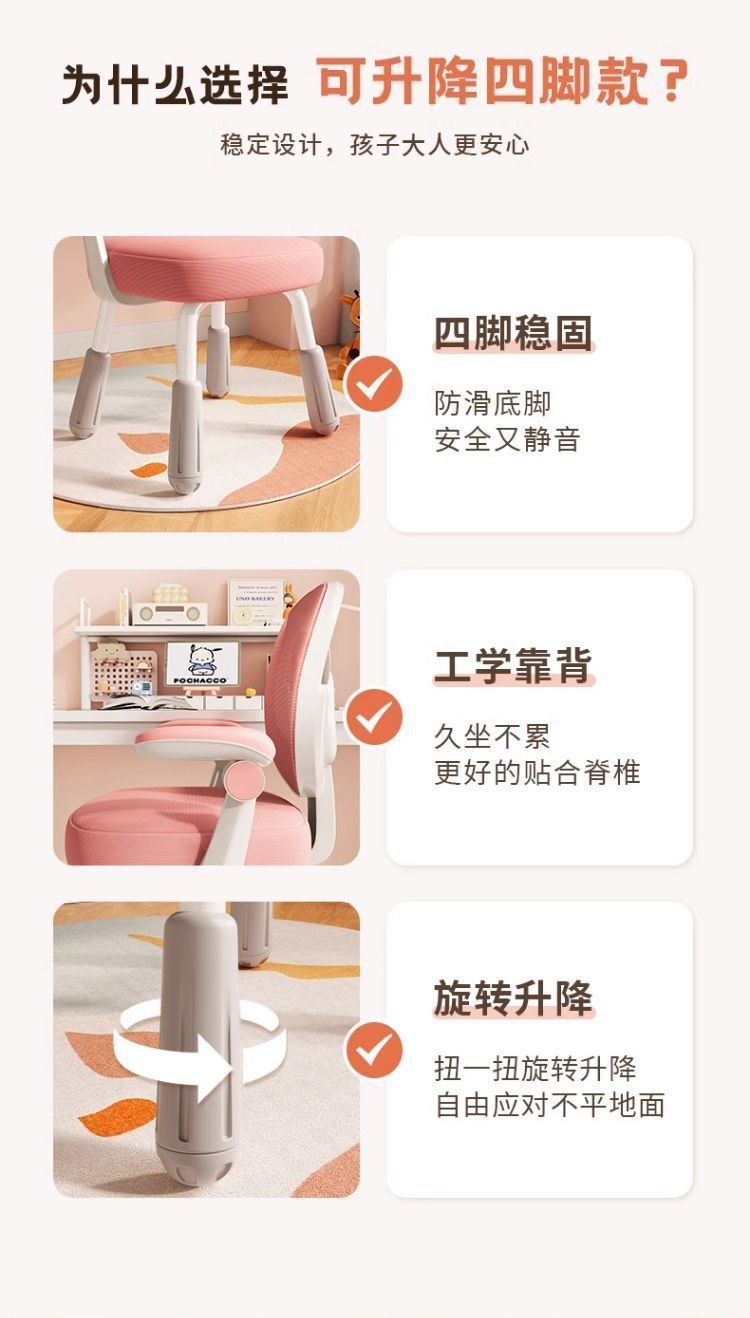 꾸준한 어린이 학습 의자 리프팅 조정 가능한 가구 작문 의자 초등학생 교정 앉은 자세 책상 의자