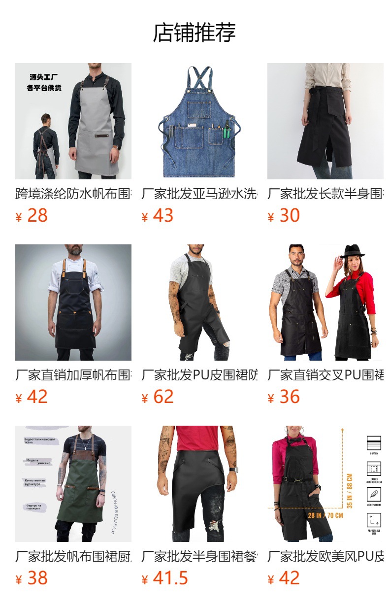공장 도매 분할 캔버스 앞치마 간단한 패션 주방 케이터링 우유 차 가게 커피 숍 유럽과 미국의 인기있는 앞치마스토어 가기