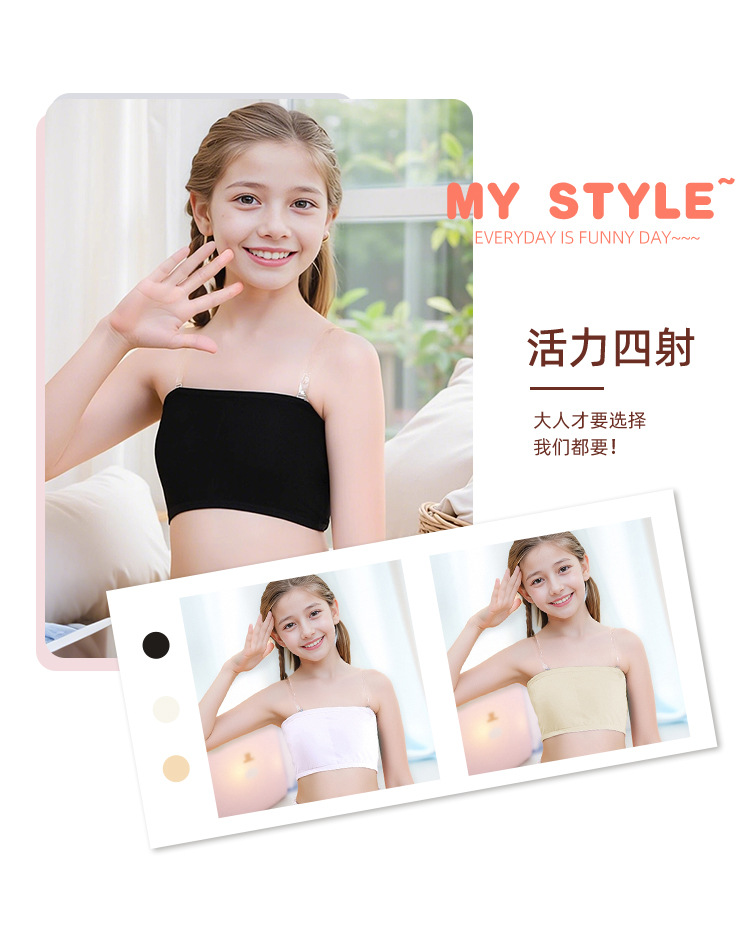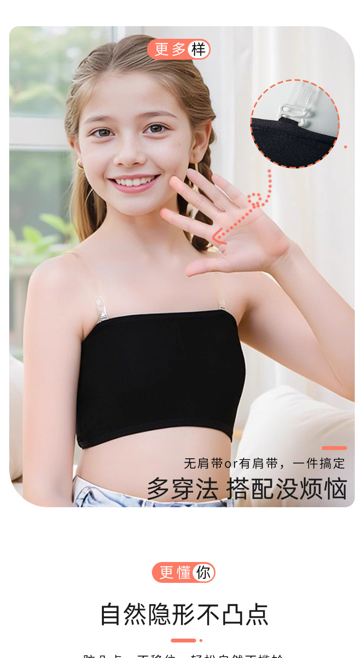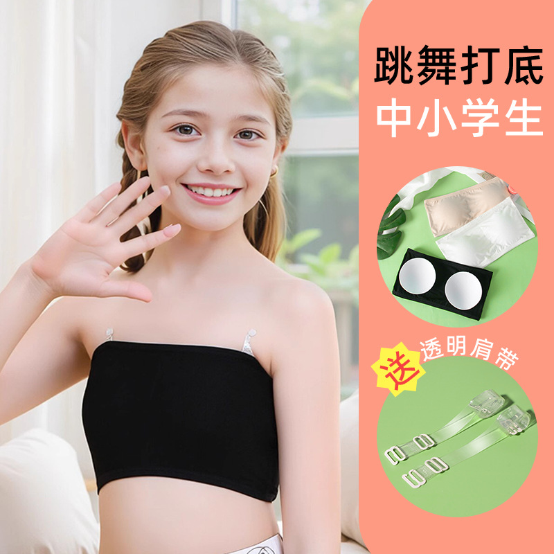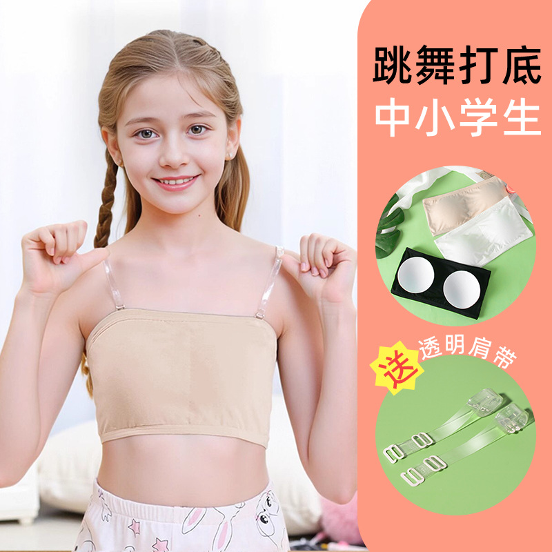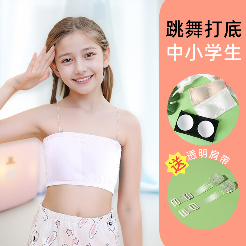 초등학생을위한 가슴 패드가 달린 소녀 끈이없는 속옷 소녀 춤추는 병투 가슴 포장 선물 투명한 어깨 끈 이동식