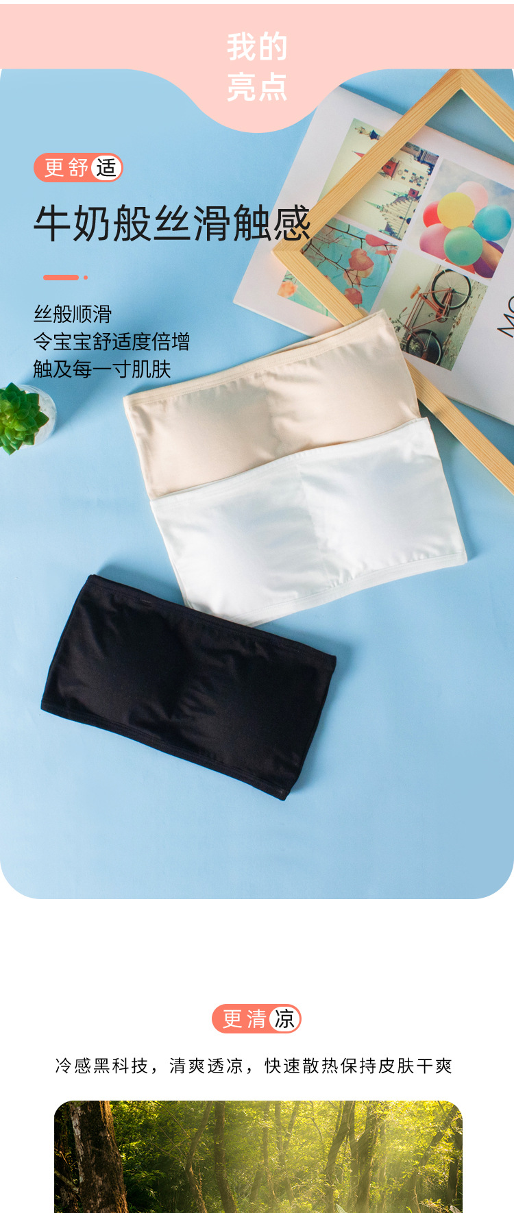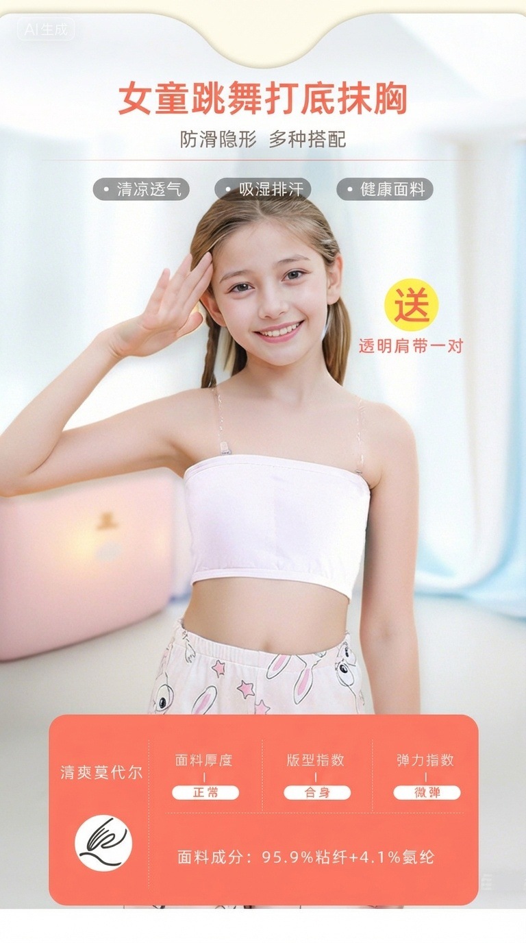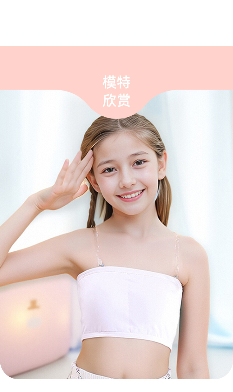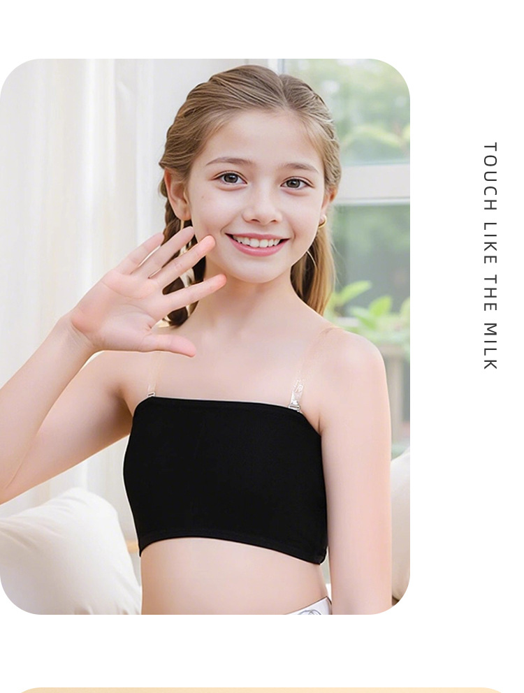 초등학생을위한 가슴 패드가 달린 소녀 끈이없는 속옷 소녀 춤추는 병투 가슴 포장 선물 투명한 어깨 끈 이동식