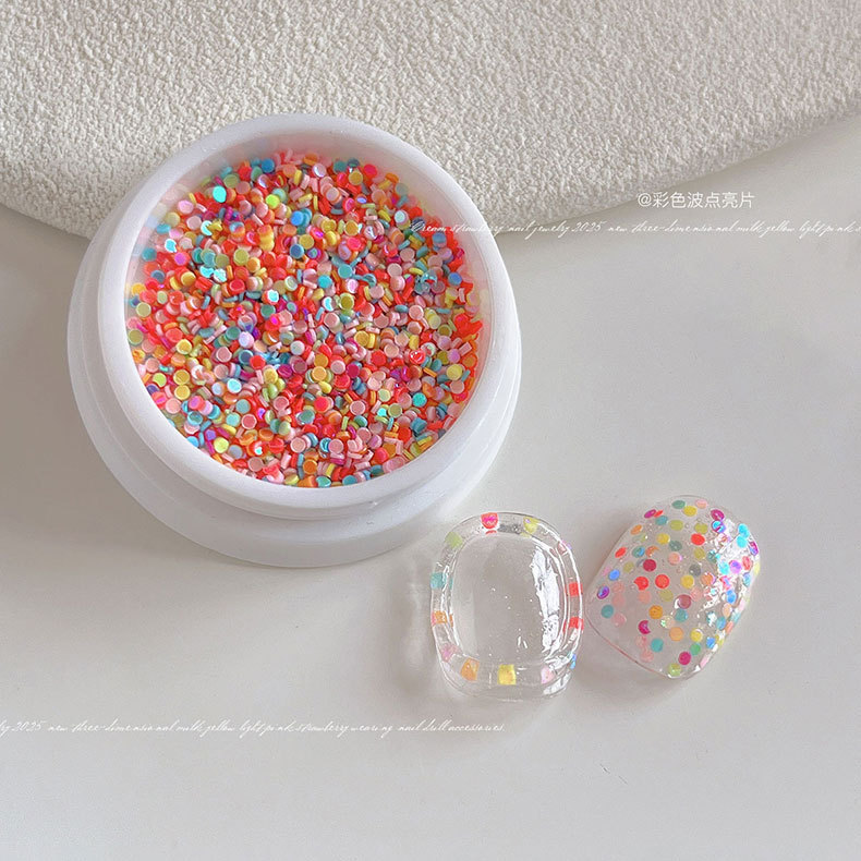 네일 아트 쥬얼리 컬러 웨이브 도트 스팽글 2025 새로운 혼합 마카롱 컬러 라운드 장갑 장식 도매스토어 가기