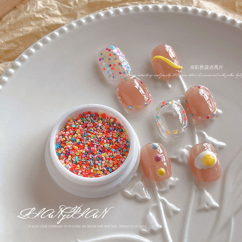 네일 아트 쥬얼리 컬러 웨이브 도트 스팽글 2025 새로운 혼합 마카롱 컬러 라운드 장갑 장식 도매