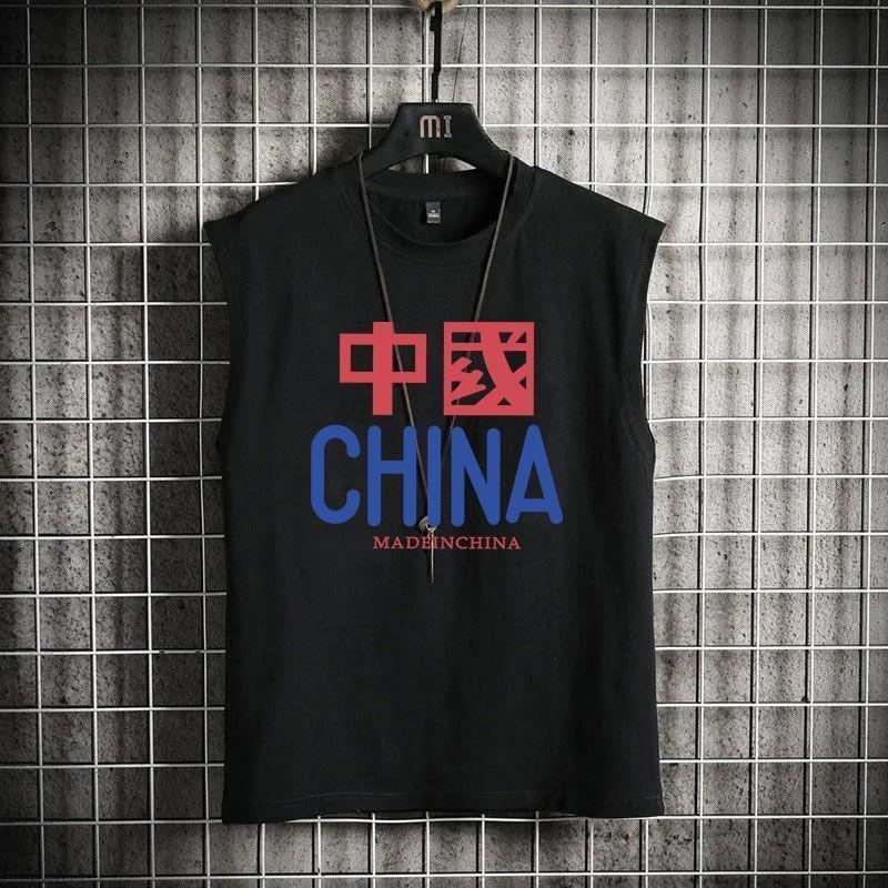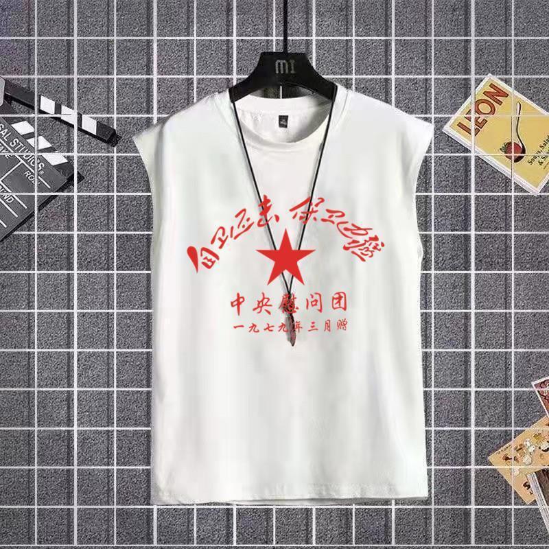 국가 트렌드 복고풍 80년대 향수 조끼 조끼 민소매 티셔츠 70년대 가난한 가구 텍스트 남성 여름 12스토어 가기