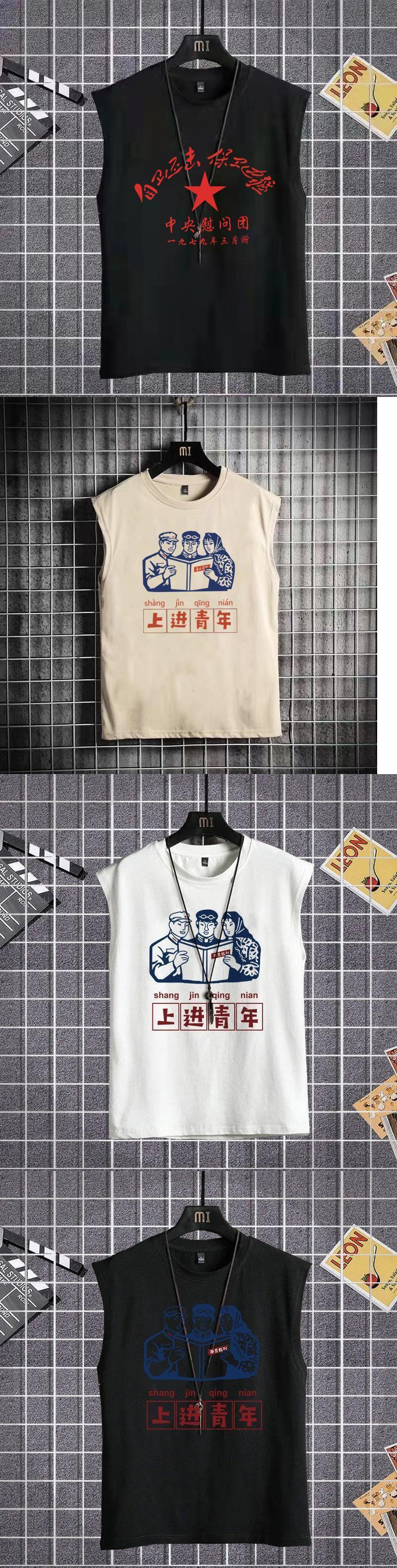 국가 트렌드 복고풍 80년대 향수 조끼 조끼 민소매 티셔츠 70년대 가난한 가구 텍스트 남성 여름 12