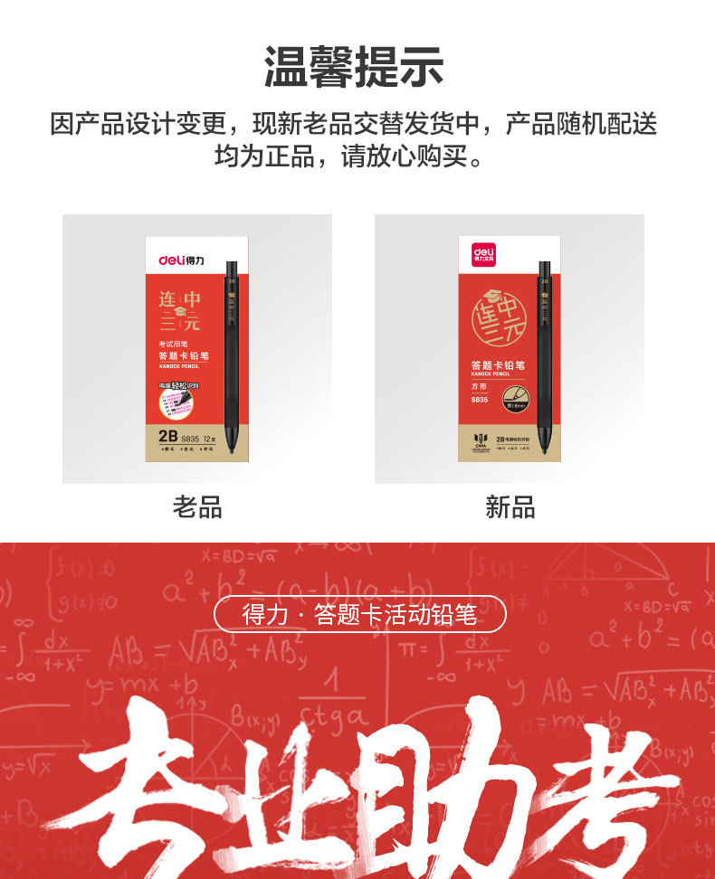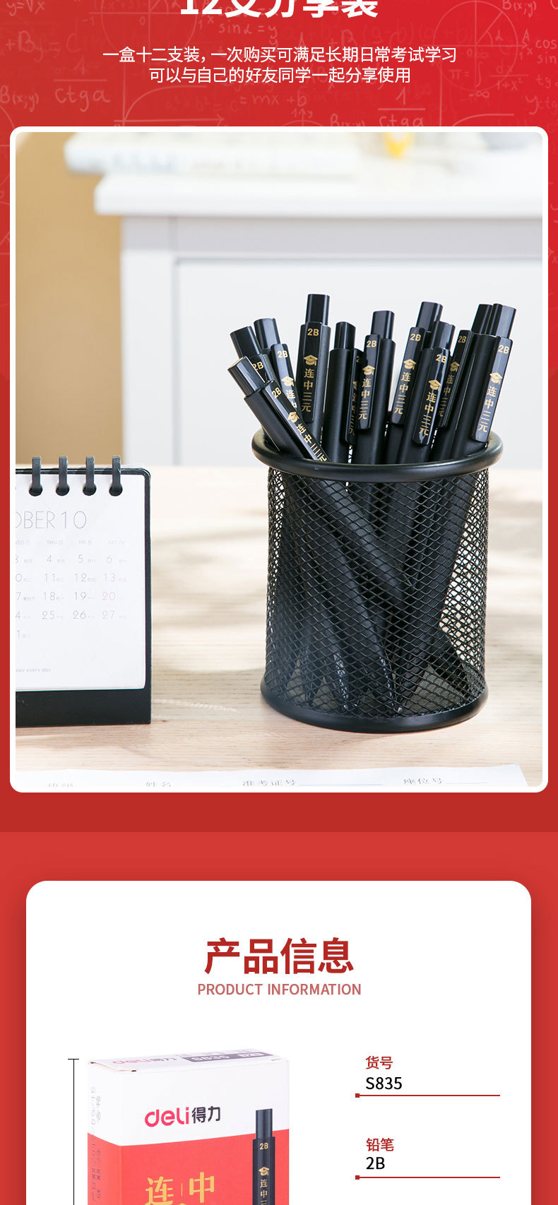 델리 S835 심지어 3 위안 응답 카드 자동 연필 2B 컴퓨터 코팅 연필 학생 시험 특별 연필스토어 가기