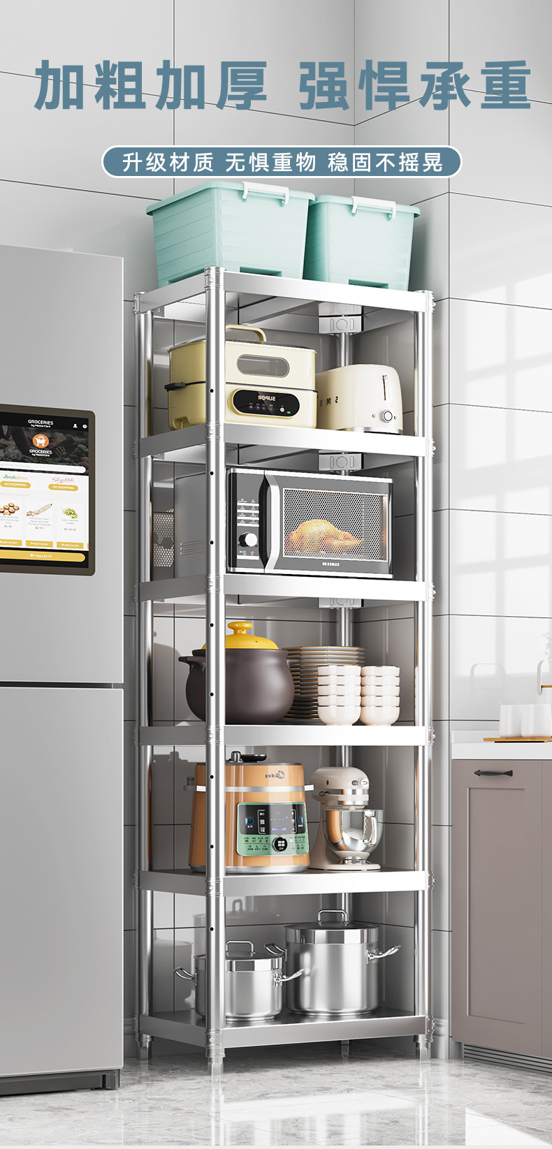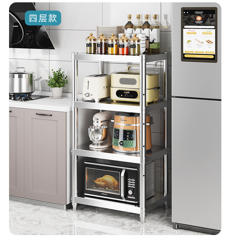 스테인레스 스틸 틈새 수납 선반 주방 수납 선반 전자 레인지 수납 선반 가정용 수납 냄비 선반스토어 가기