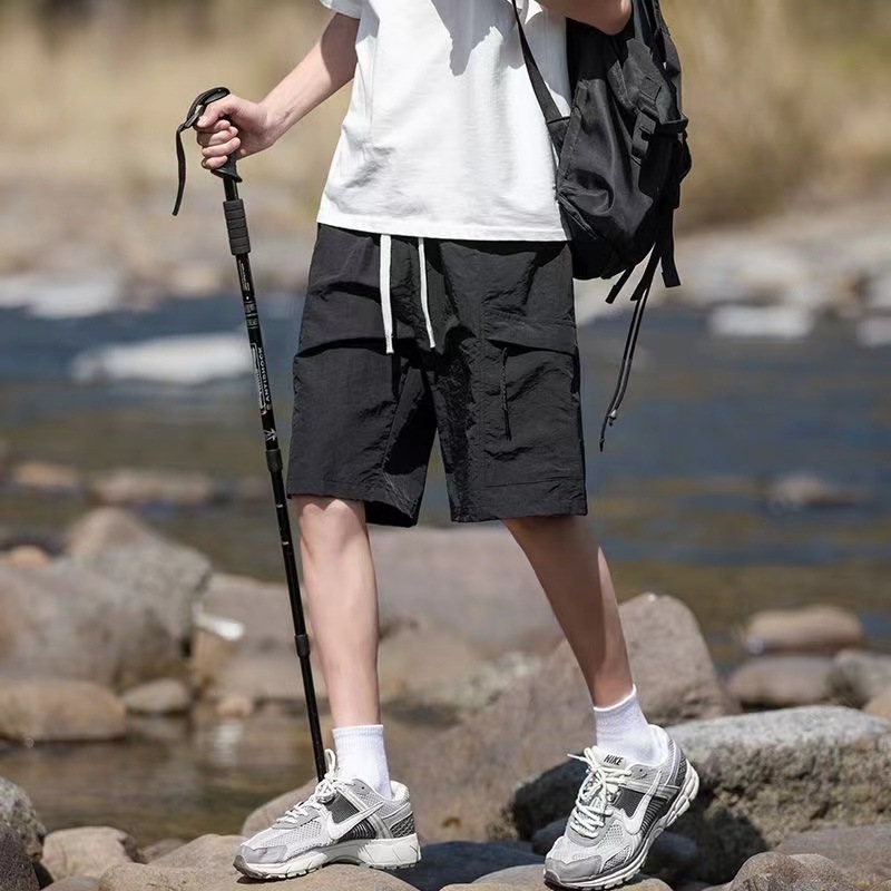 카고 반바지 남성 2025 여름 얇은 얼음 실크 바지 미국 스포츠 비치 바지 속건 포켓 충전 바지