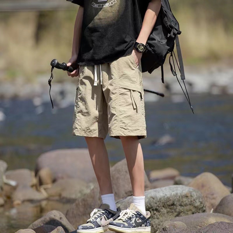 카고 반바지 남성 2025 여름 얇은 얼음 실크 바지 미국 스포츠 비치 바지 속건 포켓 충전 바지스토어 가기