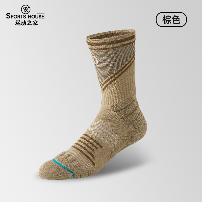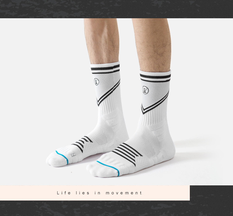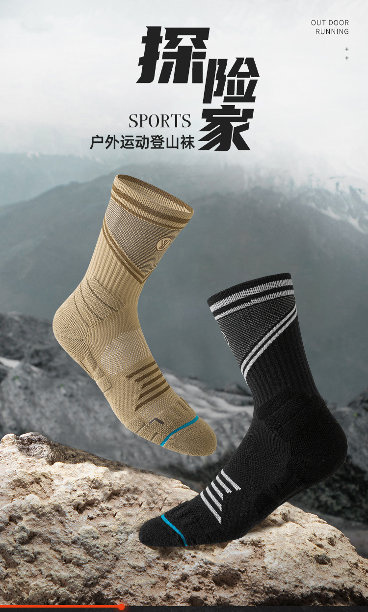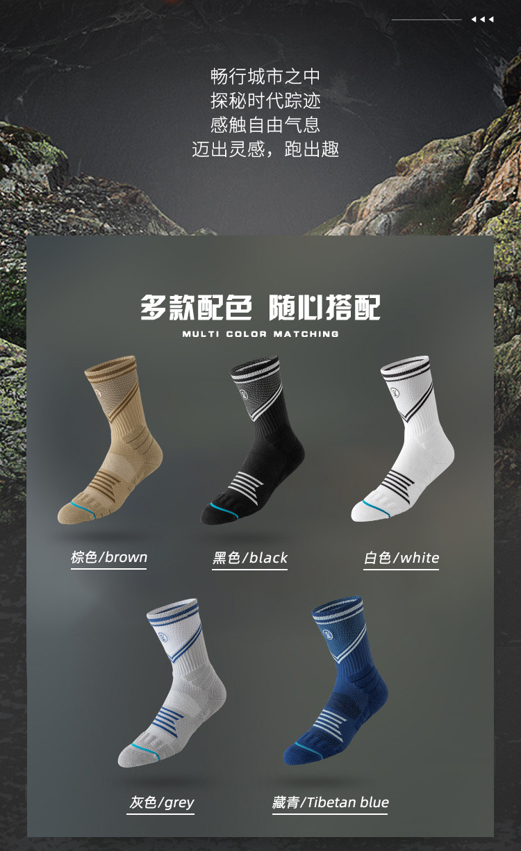 남성용 종아리 중간 야외 하이킹 양말, 자수 로고, 전문 미끄럼 방지 통기성 수건 바닥 스포츠 양말, 러닝 양말스토어 가기