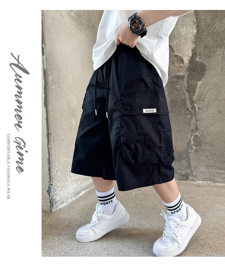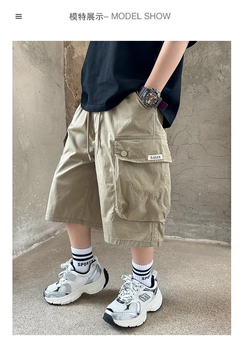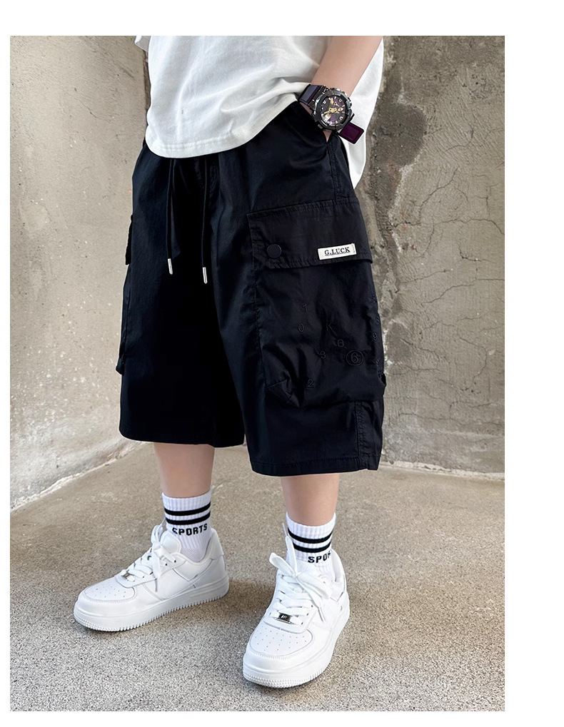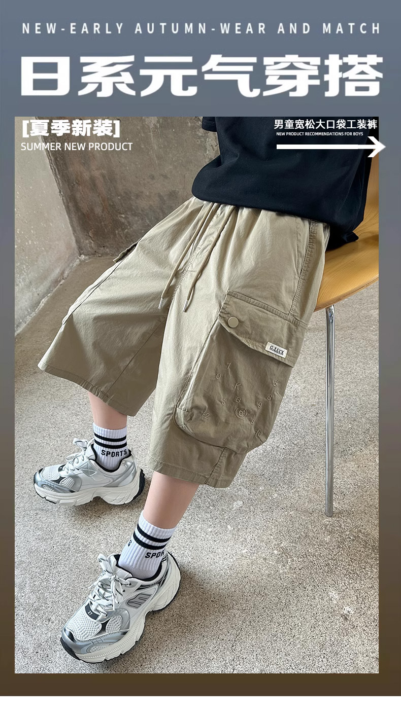 공장 현장 아동복 소년 바지 여름 얇은 작업복 아동 여름 큰 어린이 여름 중간 바지 소년 5부 바지스토어 가기
