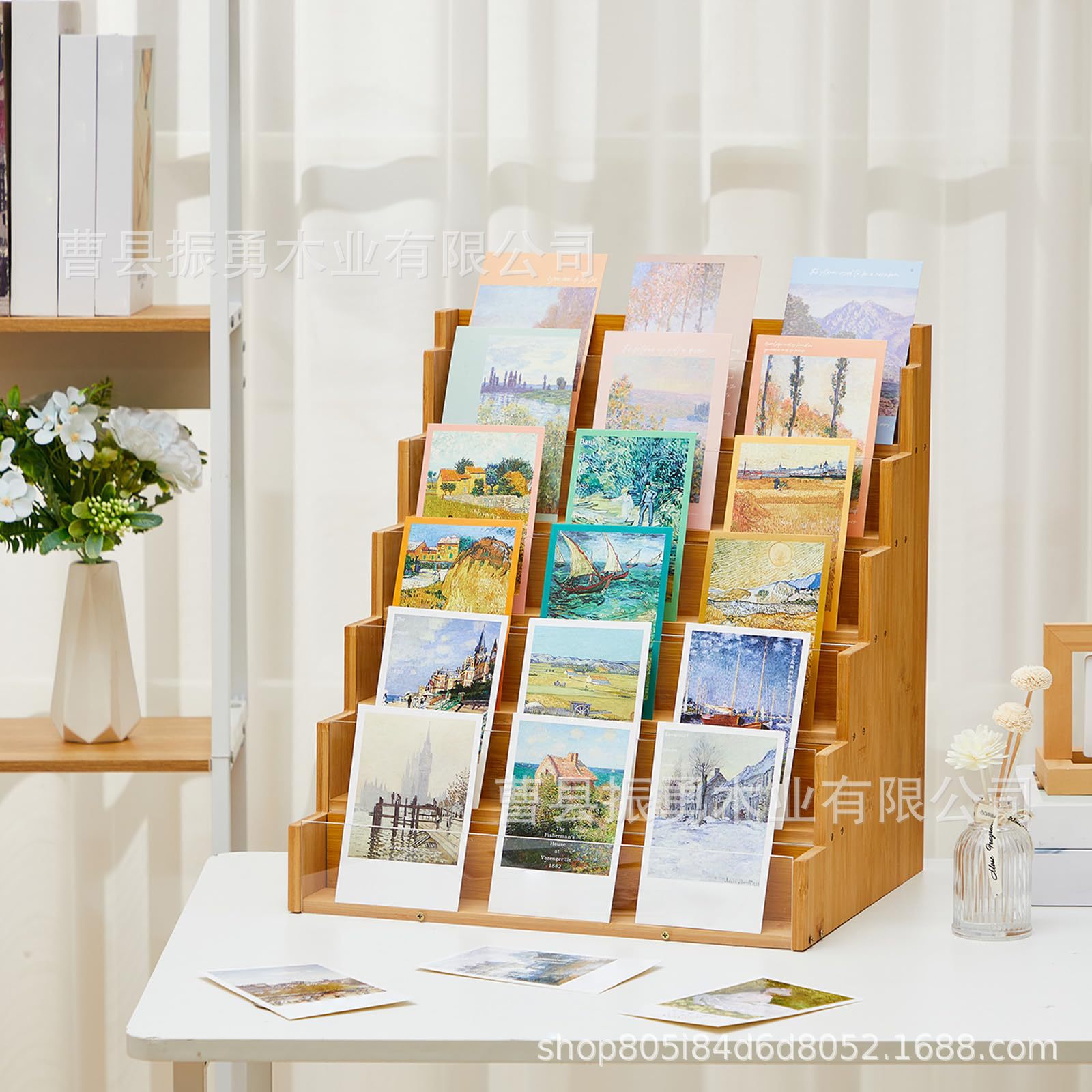 데스크탑 나무 인사말 카드 홀더 나무 인사말 카드 디스플레이 스탠드 계단식 나무 인사말 카드 보관함 나무 스티커 홀더스토어 가기
