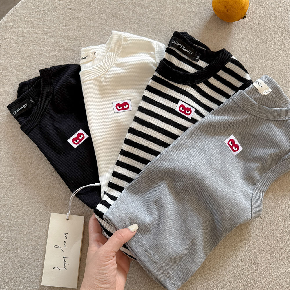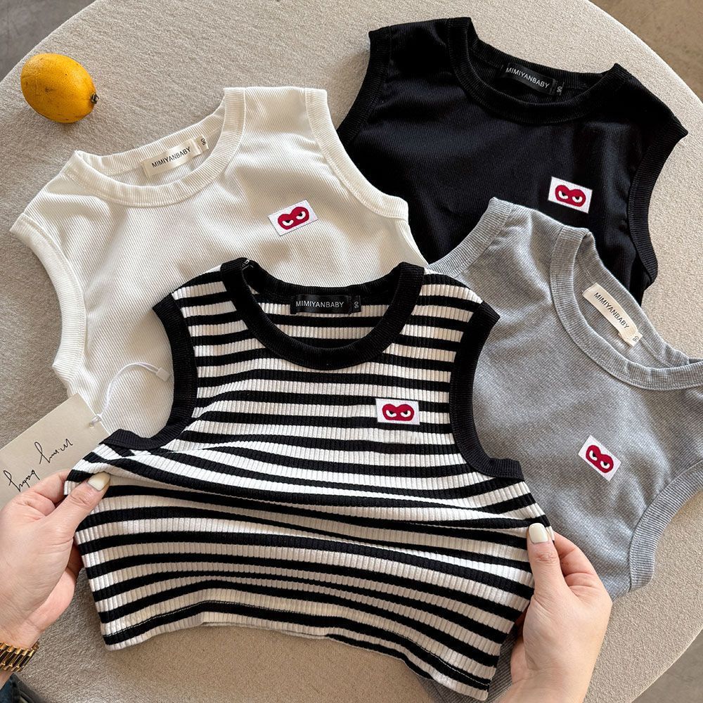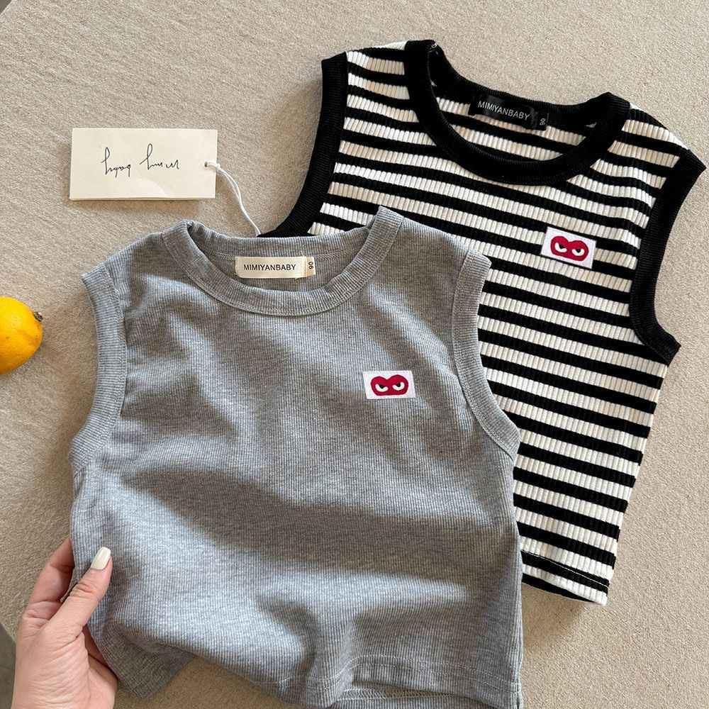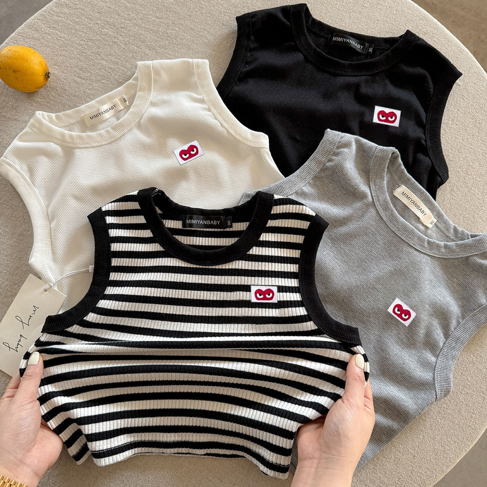 새로운 어린이 조끼 남자 여름 새로운 어린이 민소매 티셔츠 사랑 아기 줄무늬 I 자형 조끼 여자의 얇은