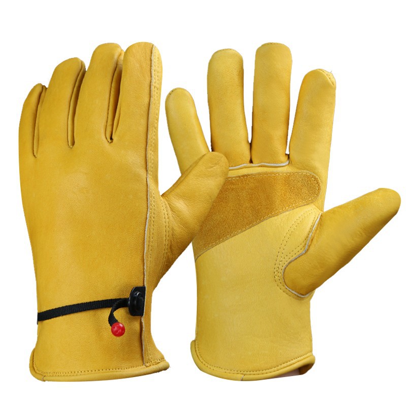 Huameidun 노동 보호 남성용 짧은 소가죽 장갑, 내마모성, 단열, 화상 방지, 용접공, 용접 보호, 사이클링 특수