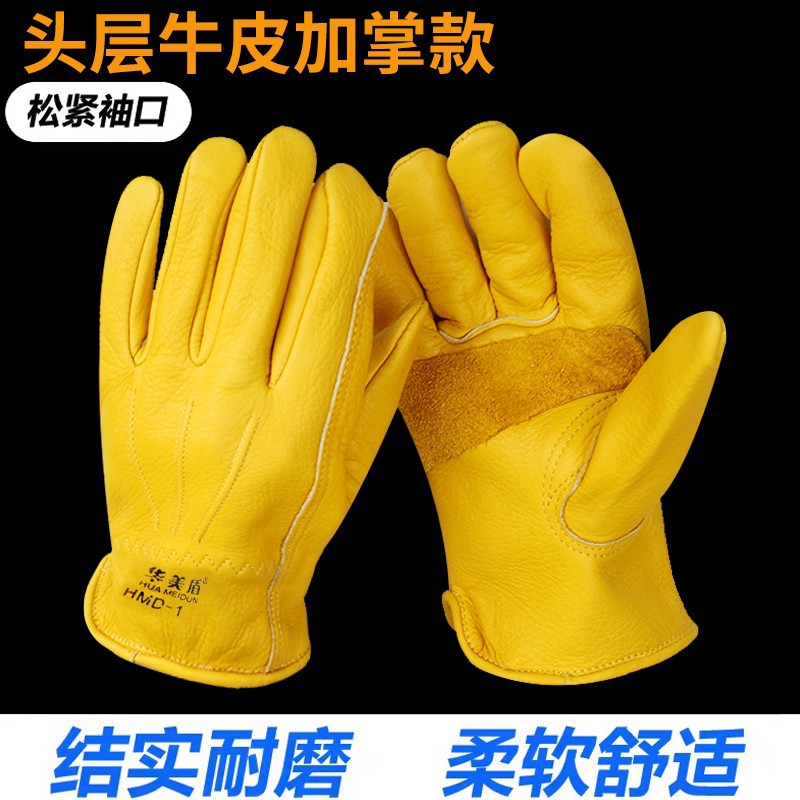 Huameidun 노동 보호 남성용 짧은 소가죽 장갑, 내마모성, 단열, 화상 방지, 용접공, 용접 보호, 사이클링 특수스토어 가기