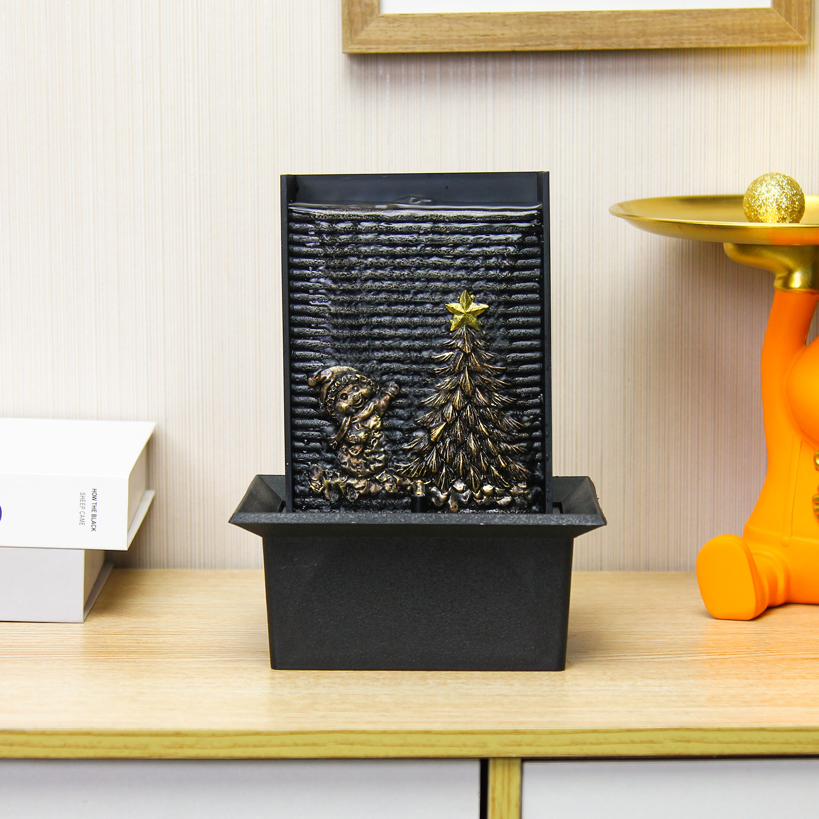 국경 간 플라스틱 작은 흐르는 물 장식품 데스크탑 사무실 거실 장식 작은 분수 순환 물 장식품 오프닝 선물