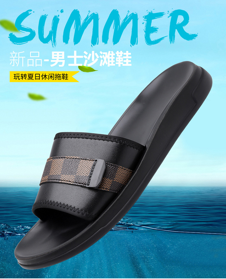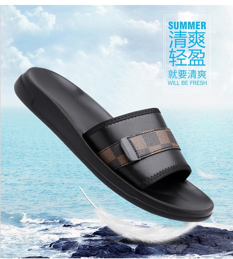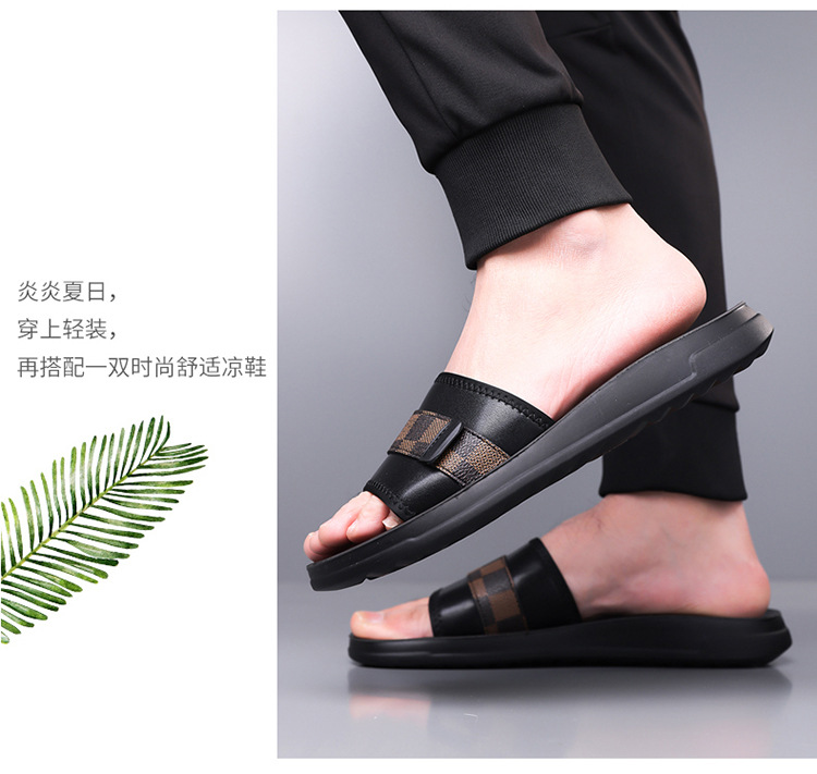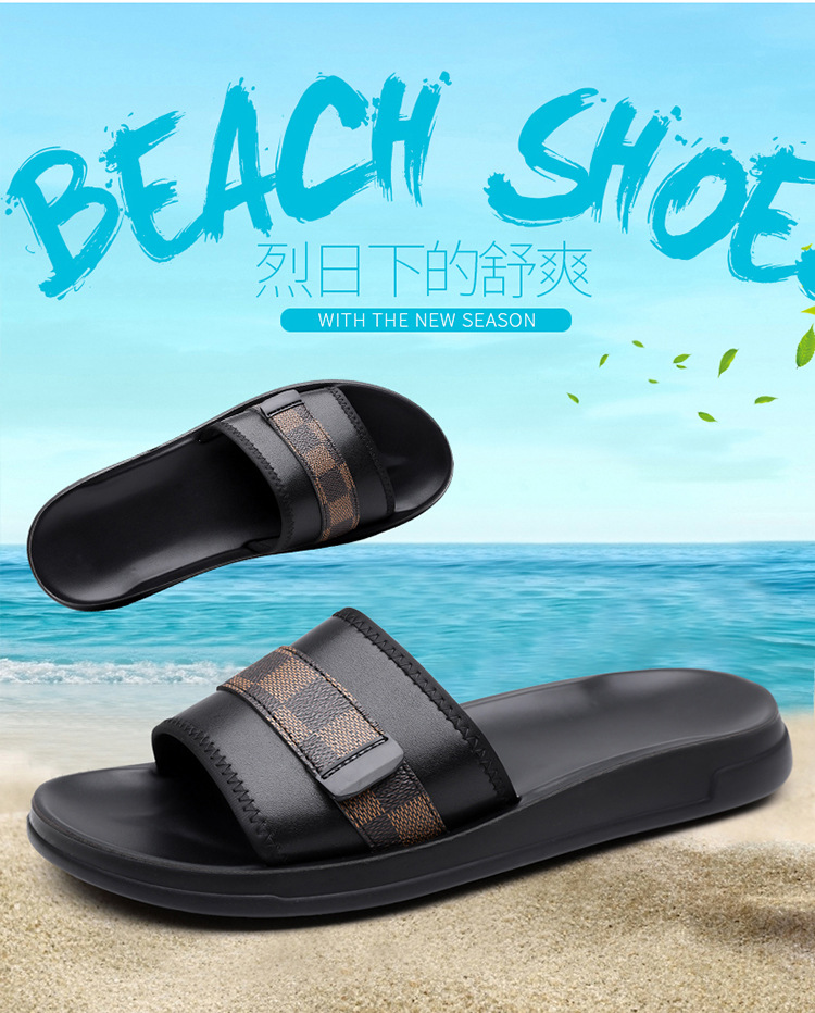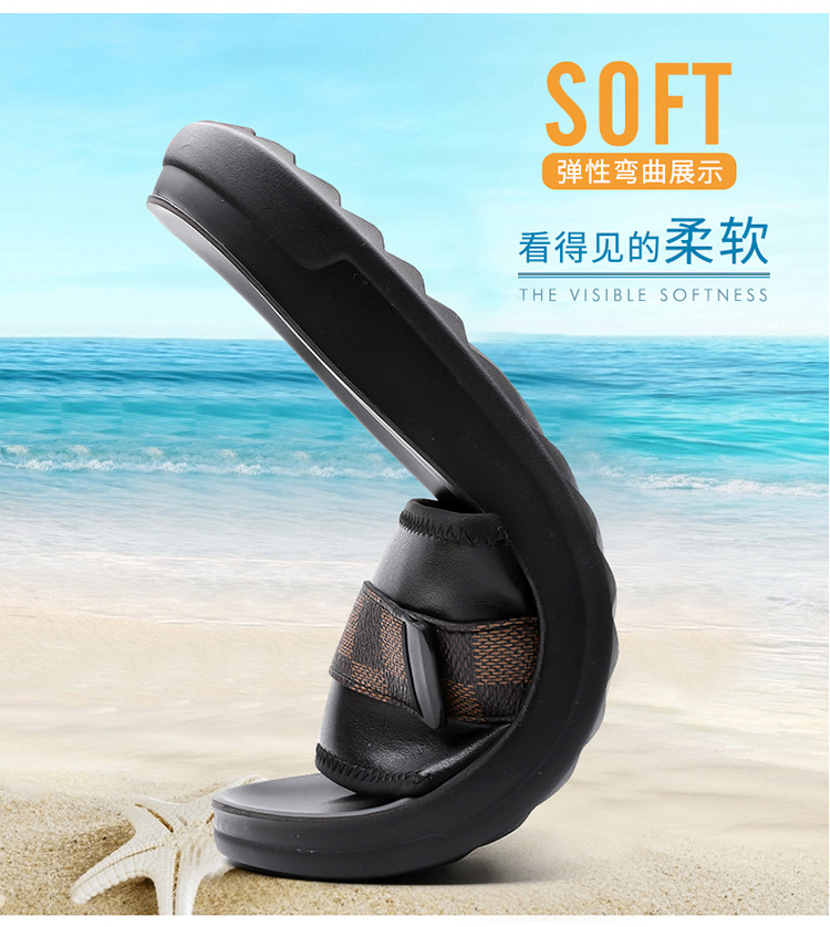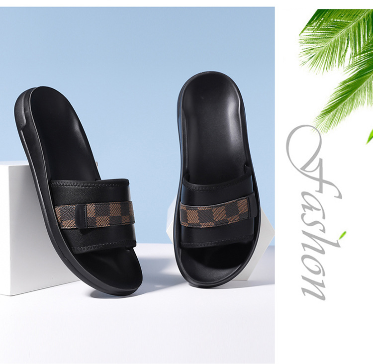 2025 남성 슬리퍼 여름 새로운 패션 격자 무늬 비치 신발 가벼운 럭셔리 부드러운 바닥 슬리퍼 샌들 703
