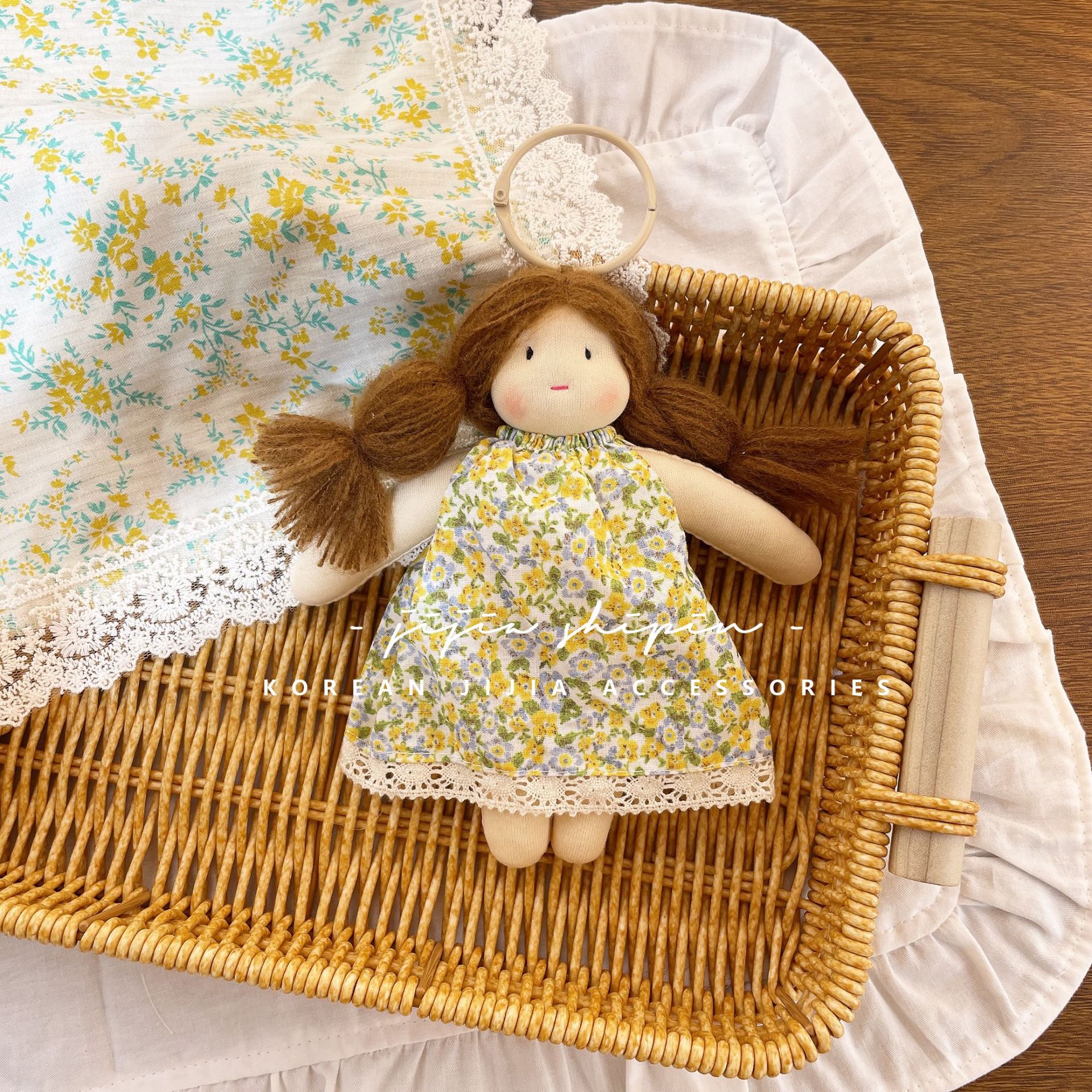• 노란색과 녹색 꽃무늬 인형