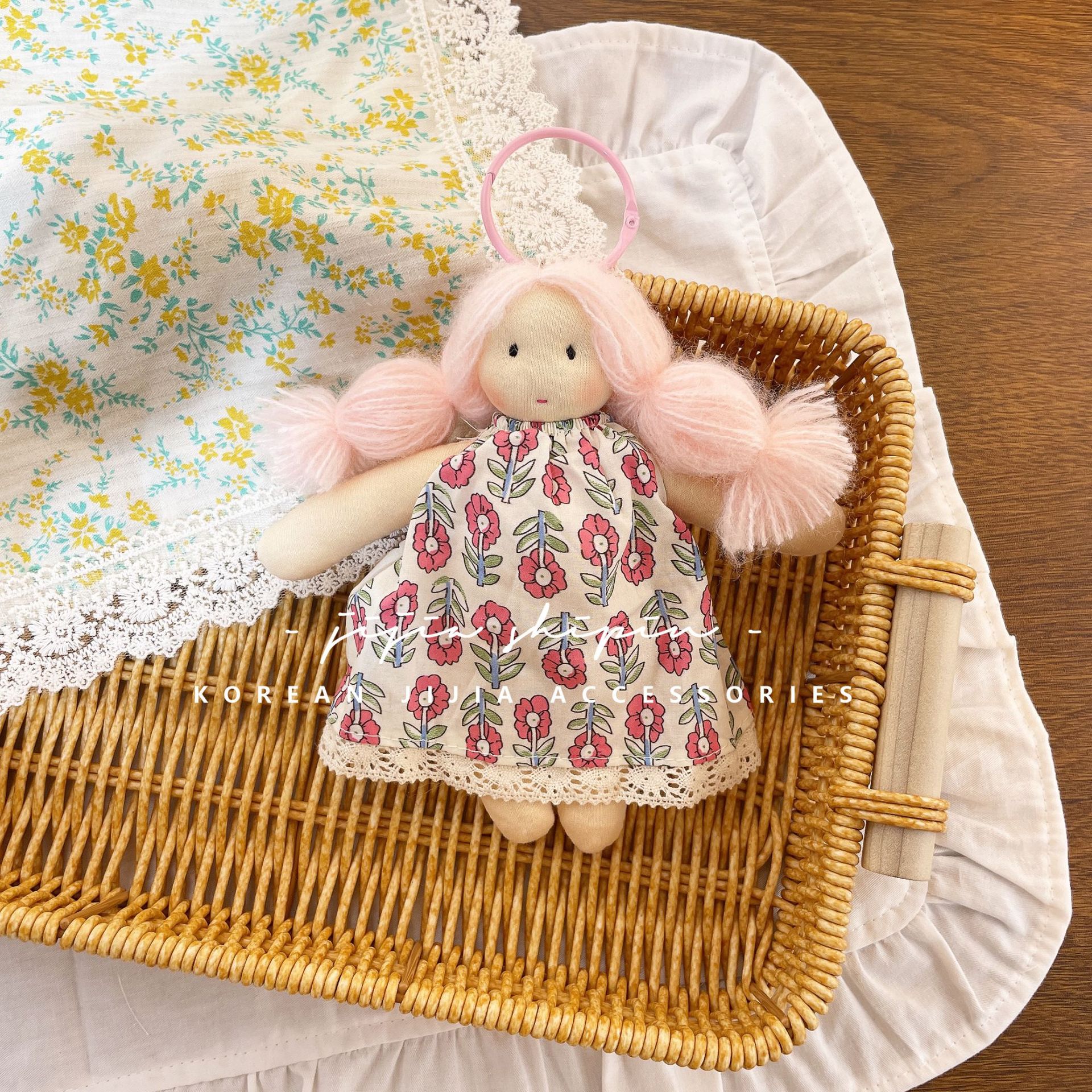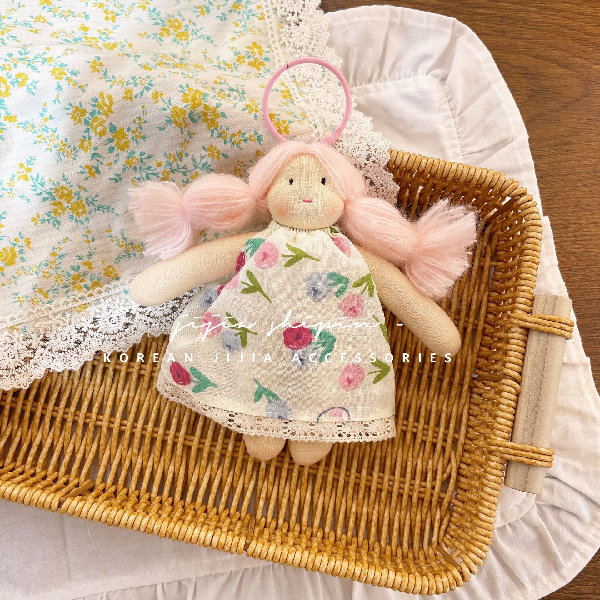 • 핑크와 그린 꽃무늬 인형
