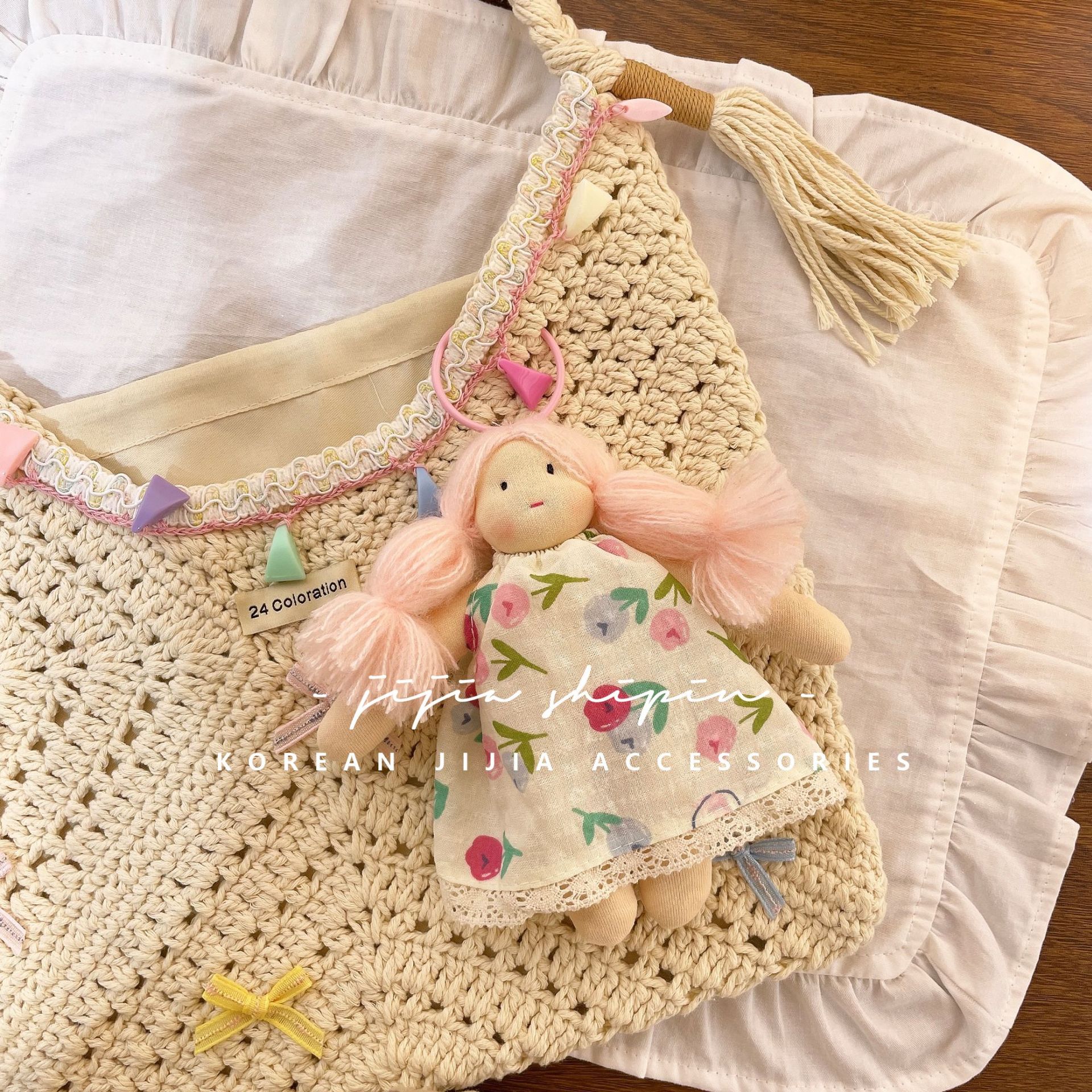 새로운 꽃 원피스 인형 펜던트 귀여운 머리 소녀 인형 가방 교수형 직물 인형 키 체인 장식