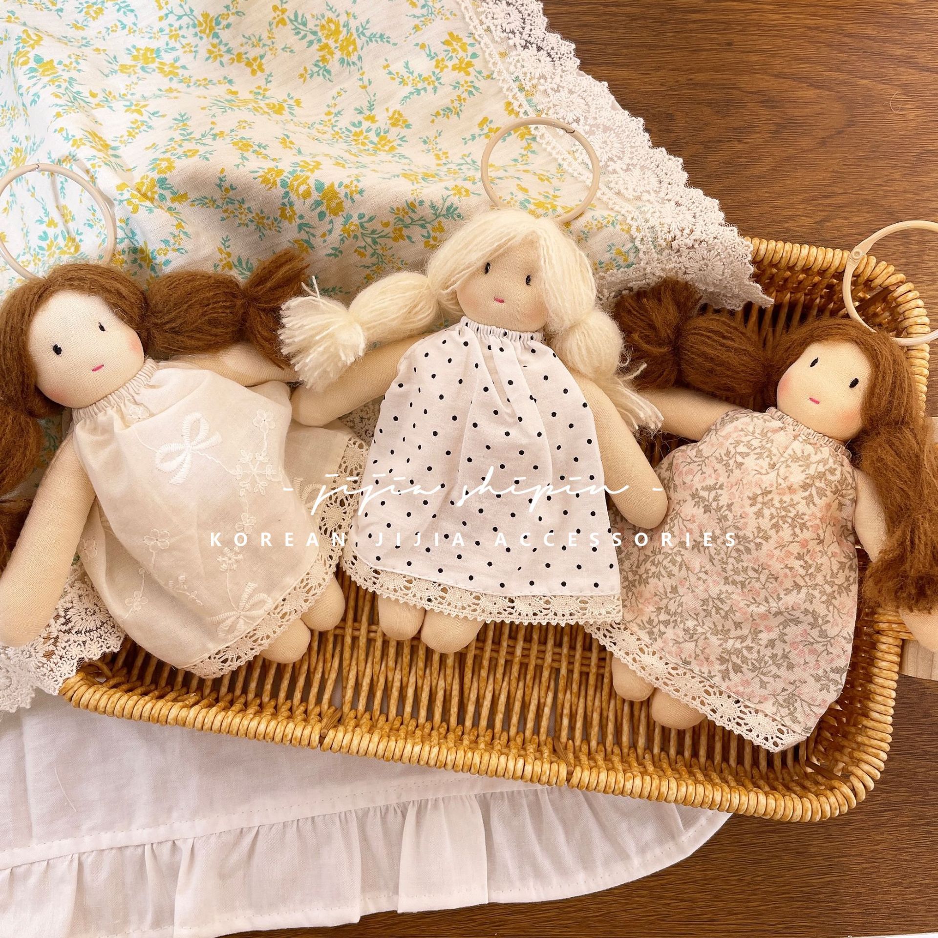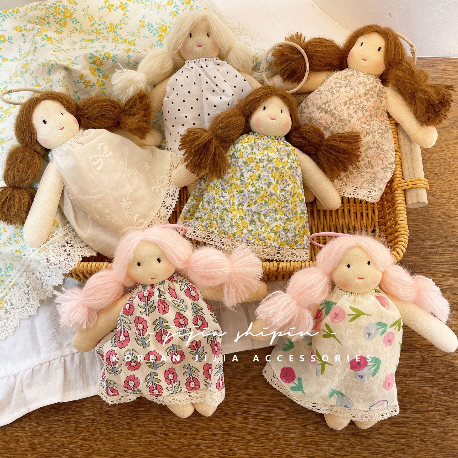 새로운 꽃 원피스 인형 펜던트 귀여운 머리 소녀 인형 가방 교수형 직물 인형 키 체인 장식스토어 가기