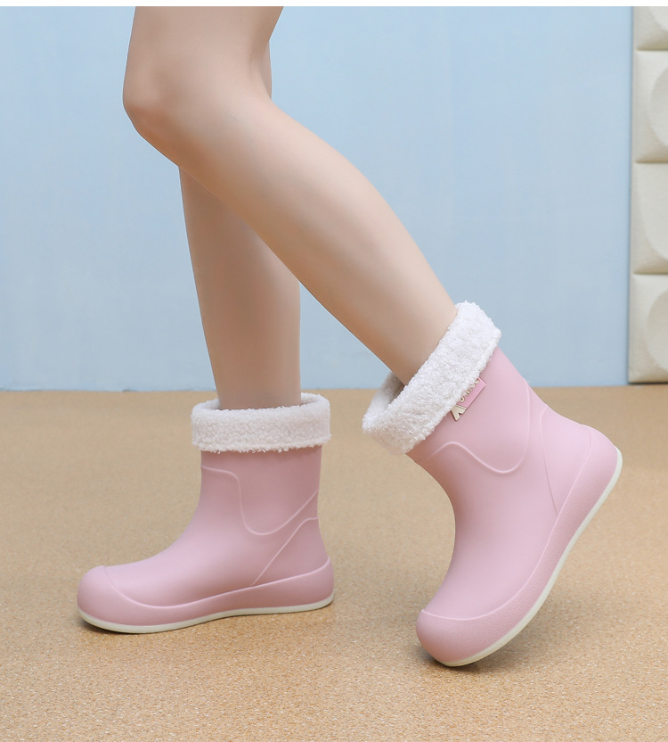 여성용 소프트솔 레인부츠, 미끄럼 방지, 귀엽고 패셔너블한 여성용 워터슈즈, 벨벳 따뜻한 고무신, 캐주얼 워터부츠