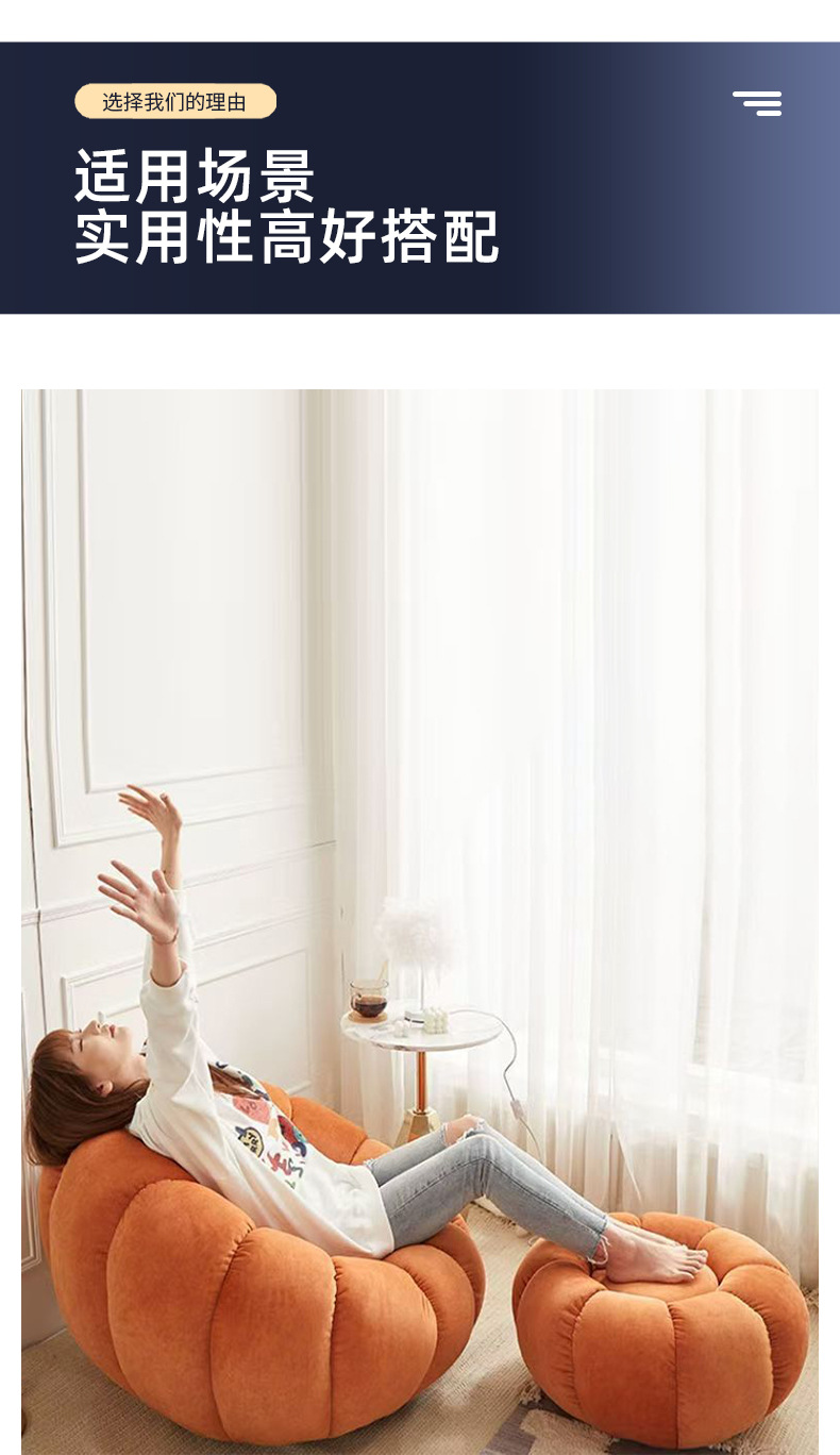 게으른 소파 호박 꽃잎 아크 단일 소파 크림 바람 회전 침실 작은 소파 발코니 레저 의자스토어 가기
