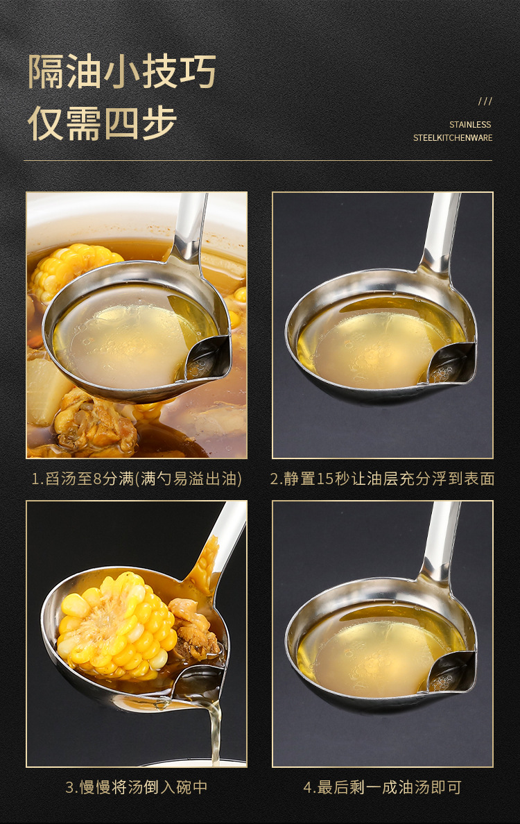 304 스테인레스 스틸 오일 분리 숟가락 드레인 오일 필터 아티팩트 스프 스푼 가정용 오일 유출 제거 오일 스푼 오일 수프 분리 스푼스토어 가기