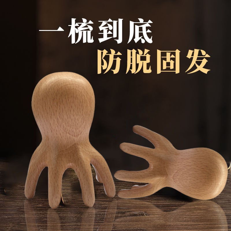 머리 마사지 빗, 경락 정화 지압 스틱, 8발 문어 빗, 백단향으로 가려움증을 완화합니다.스토어 가기