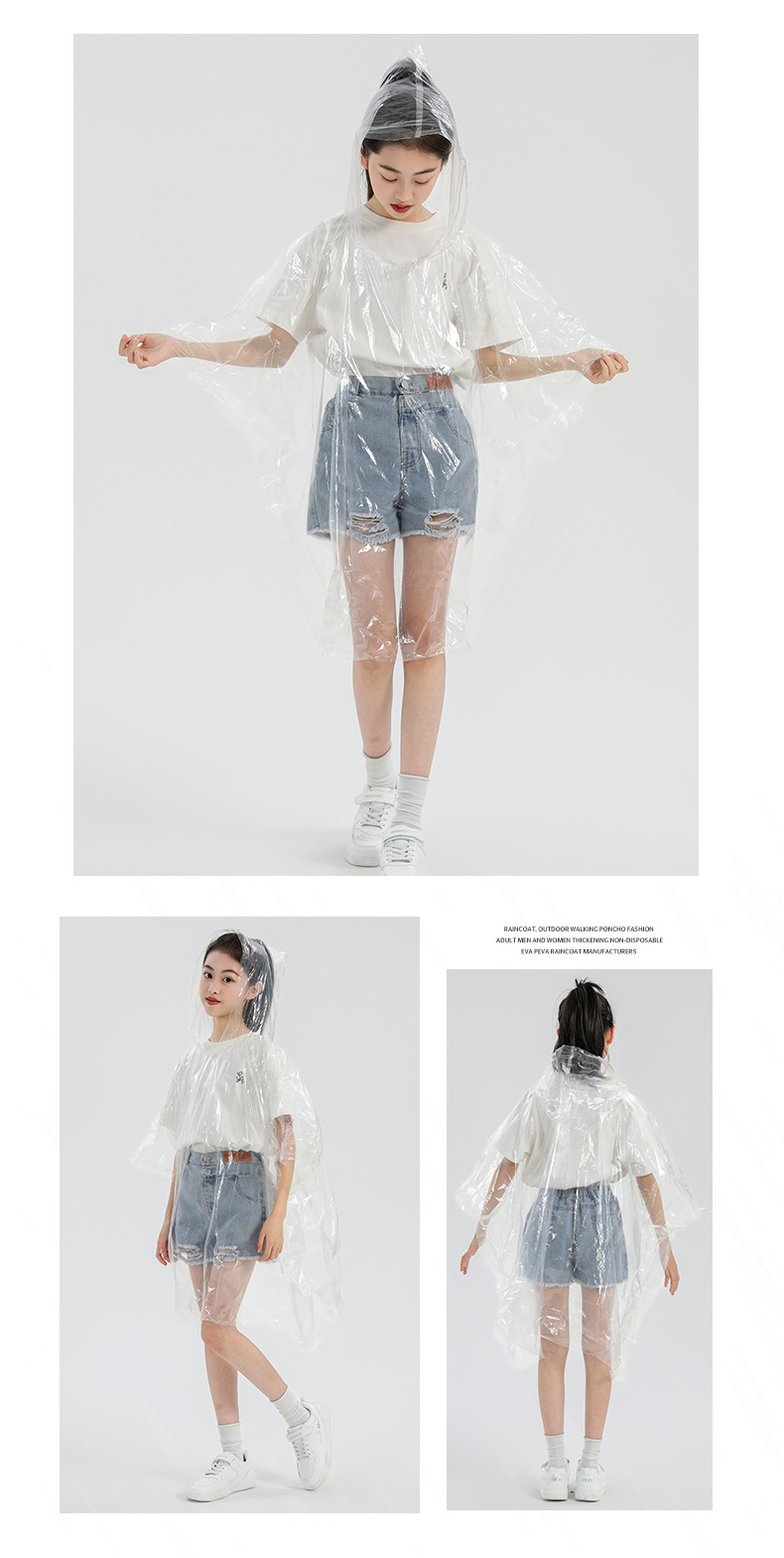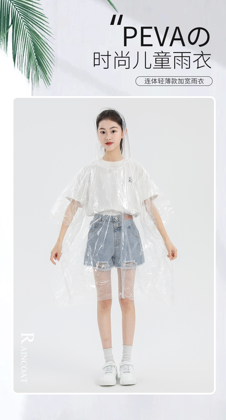 맞춤형 일회용 어린이 비옷, 야외 하이킹 후드 비옷, 경치 좋은 지역 래프팅 투명 원피스 판초