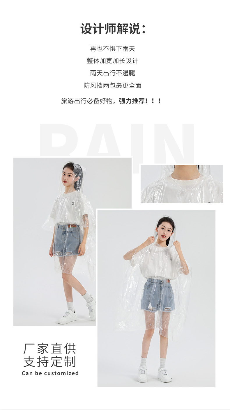 맞춤형 일회용 어린이 비옷, 야외 하이킹 후드 비옷, 경치 좋은 지역 래프팅 투명 원피스 판초스토어 가기