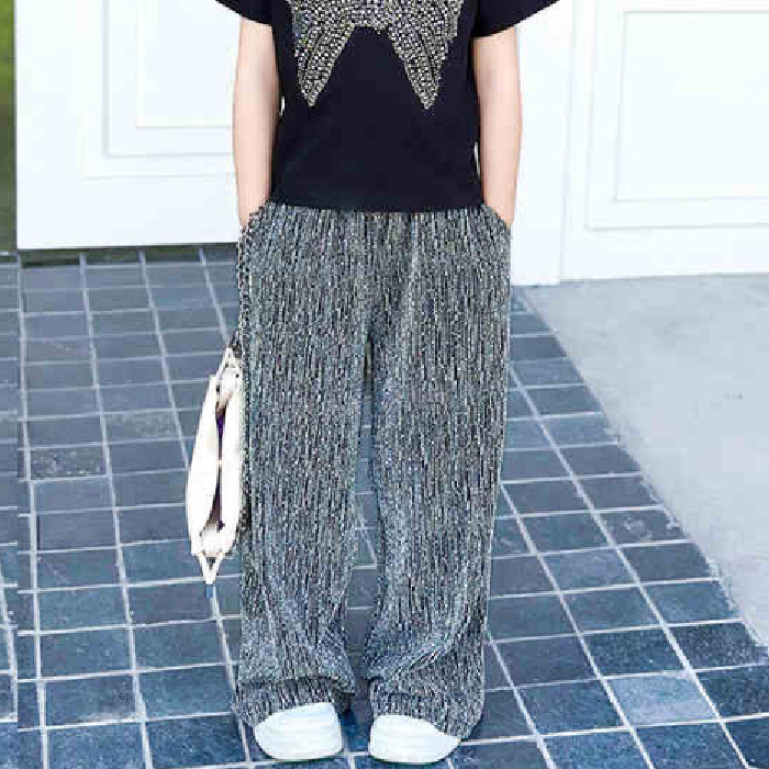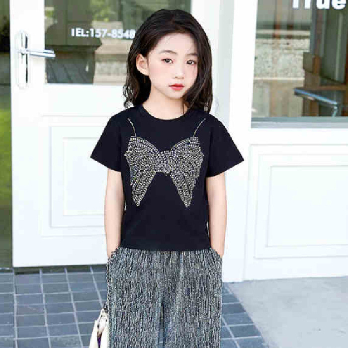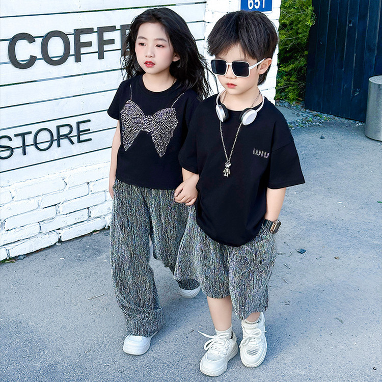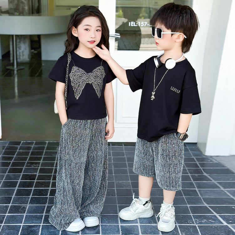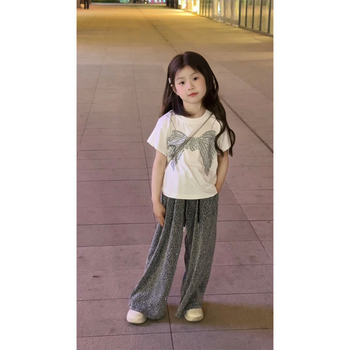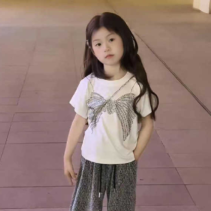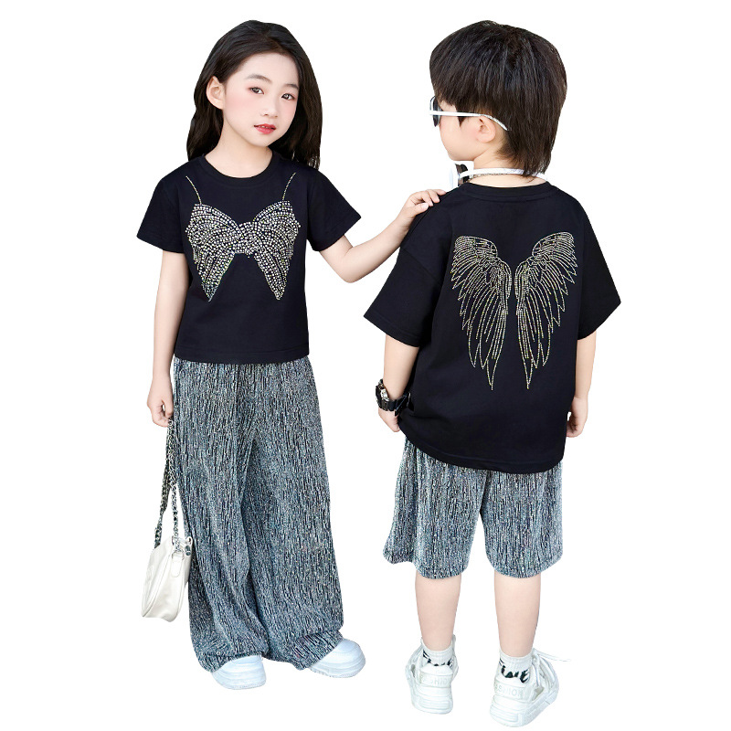 소년 소녀 여름 세트 나비 밝은 다이아몬드 짧은 소매 유성 샤워 넓은 다리 바지 소녀 유행 투피스 세트스토어 가기