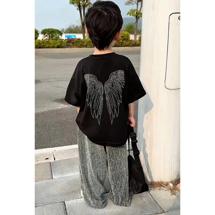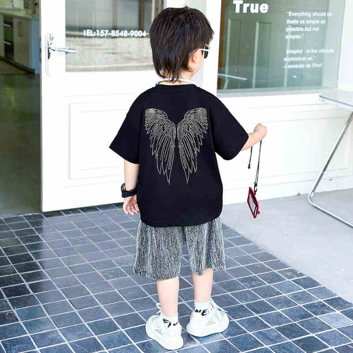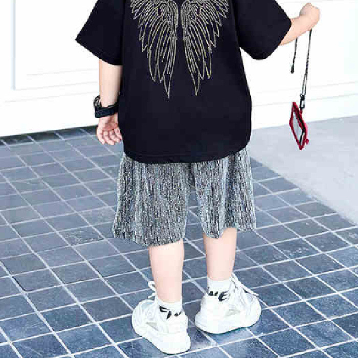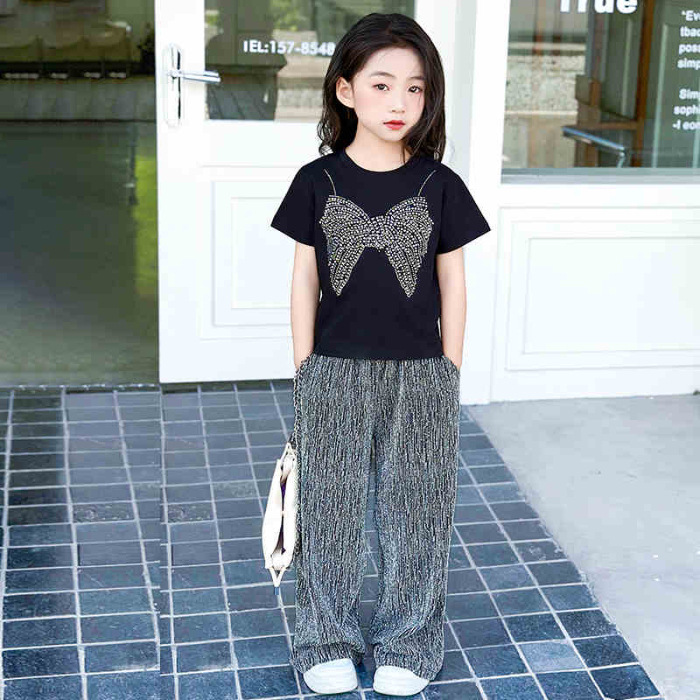 소년 소녀 여름 세트 나비 밝은 다이아몬드 짧은 소매 유성 샤워 넓은 다리 바지 소녀 유행 투피스 세트