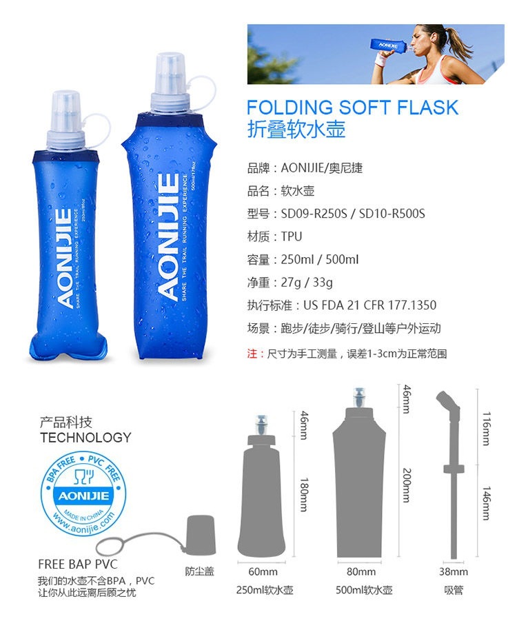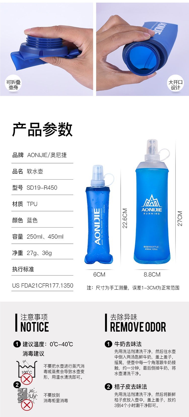 Onijie 스포츠 휴대용 소프트 물병 250ml500ml 접이식 물 컵 마라톤 등산 크로스 컨트리 러닝 워터 가방