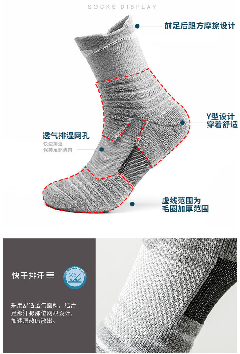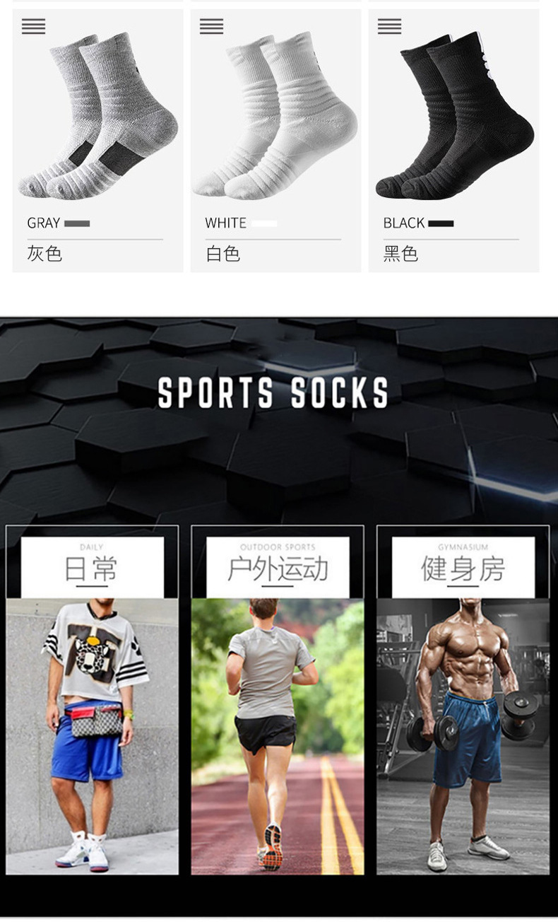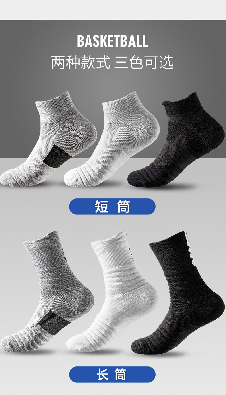 남성용 전문 스포츠 양말, 종아리 중간 스타킹, 수건 바닥, 두꺼운 충격 흡수, 미끄럼 방지 Zhuji 러닝 양말, 농구 양말스토어 가기