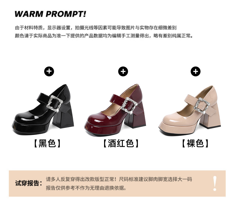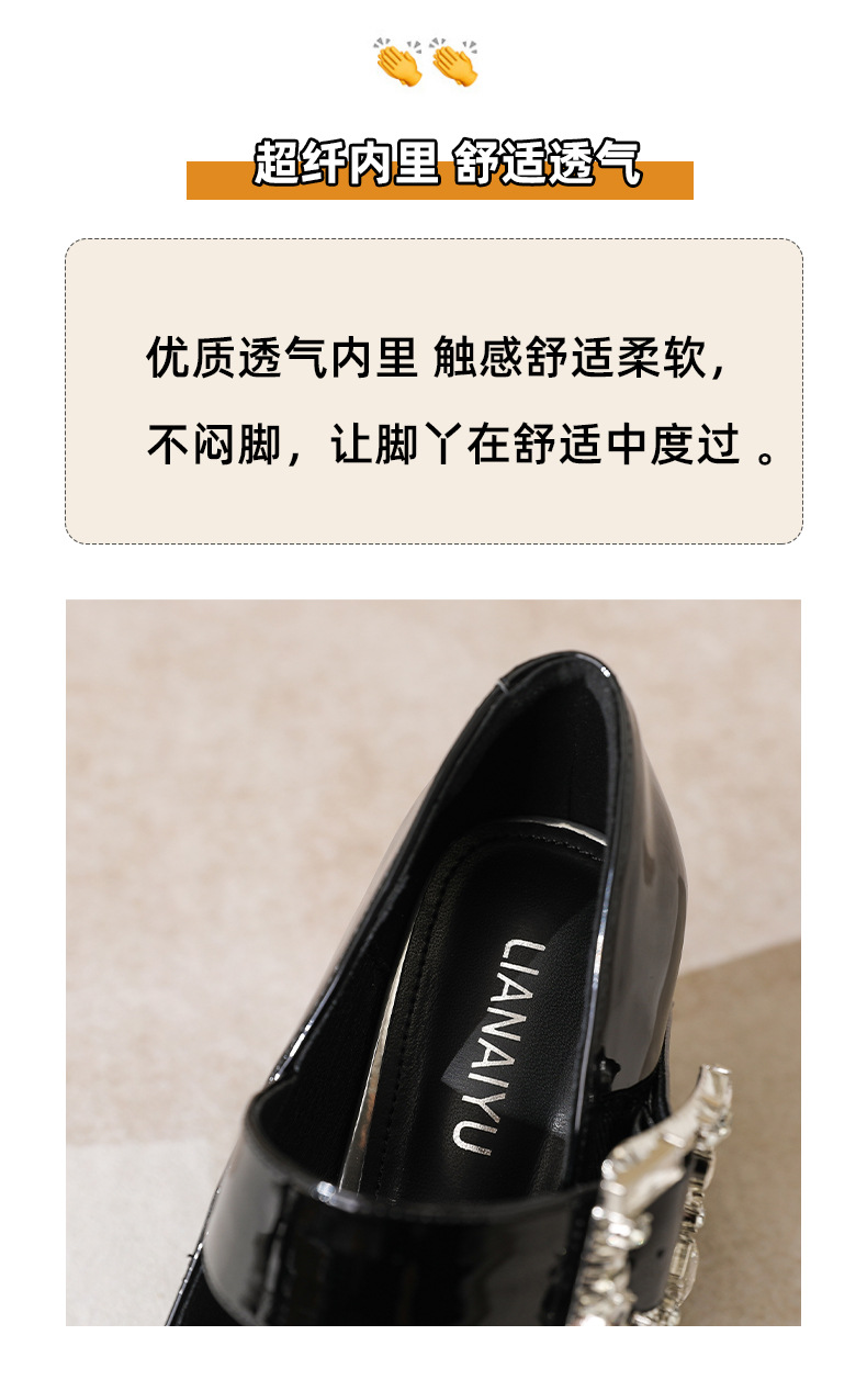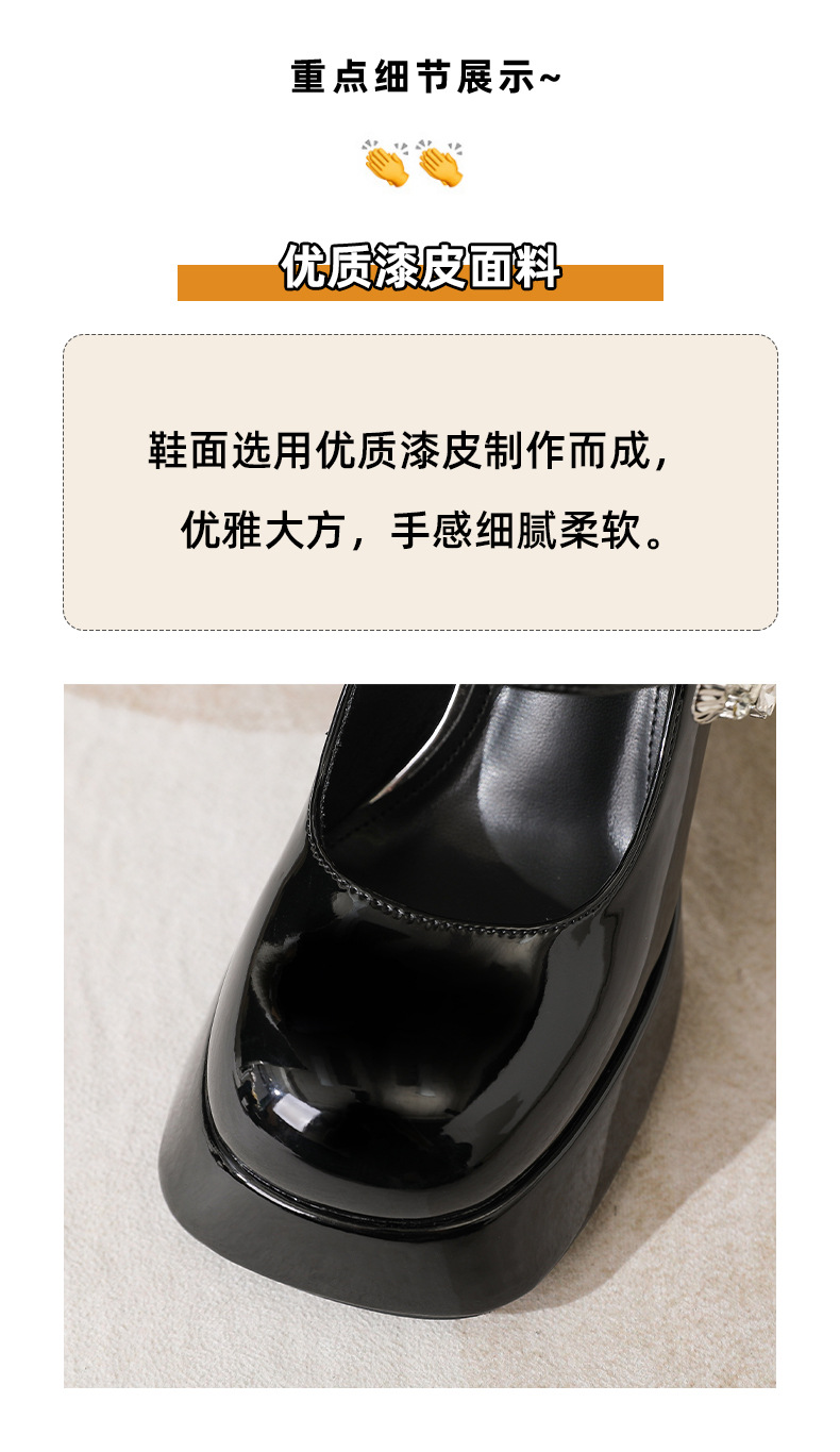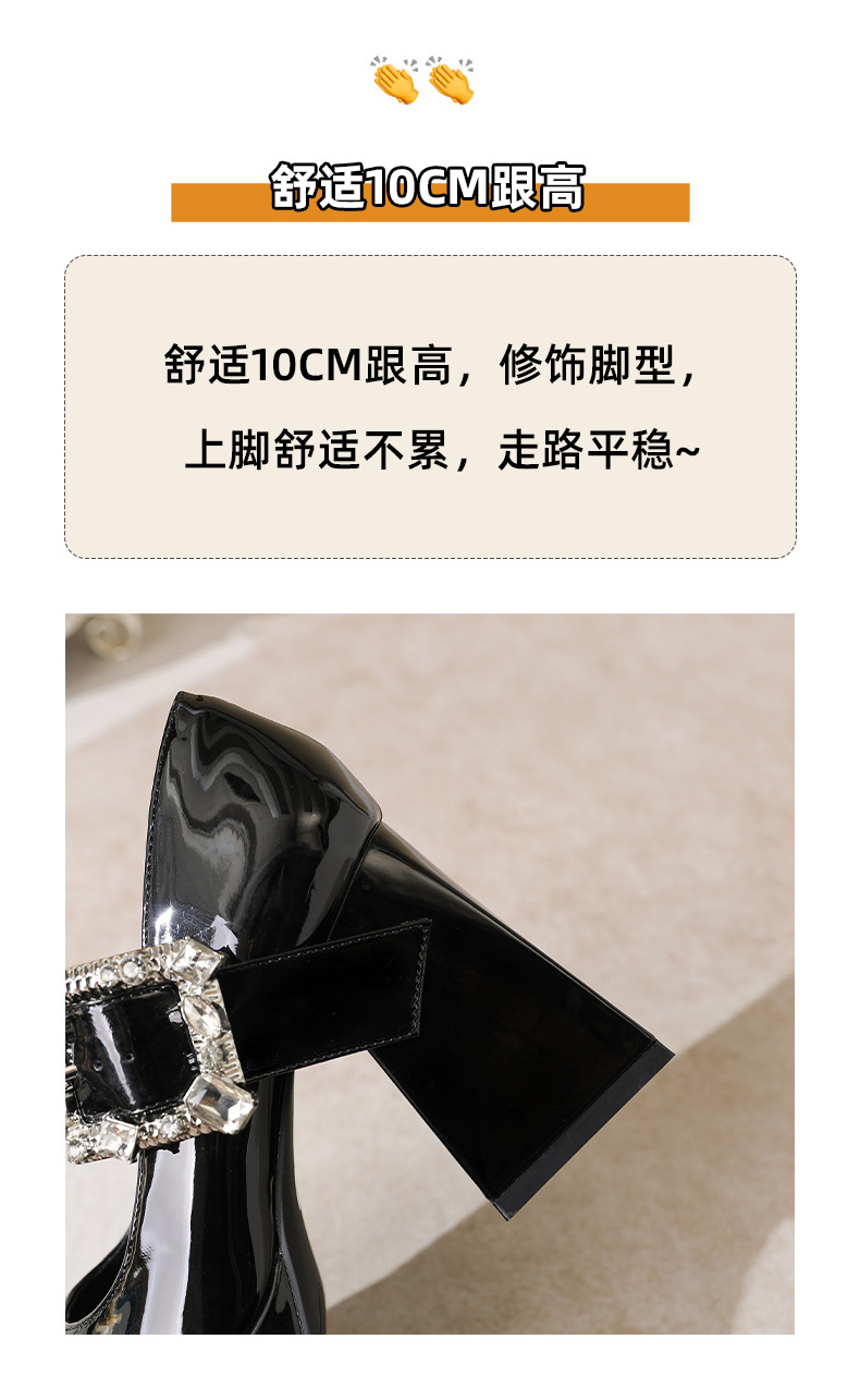 339-1 라운드 토 신형 페이턴트 가죽 라인스톤 원라인 두꺼운 굽 하이힐 여성용 방수 플랫폼 슈즈, 다용도 크로스보더 슈즈스토어 가기