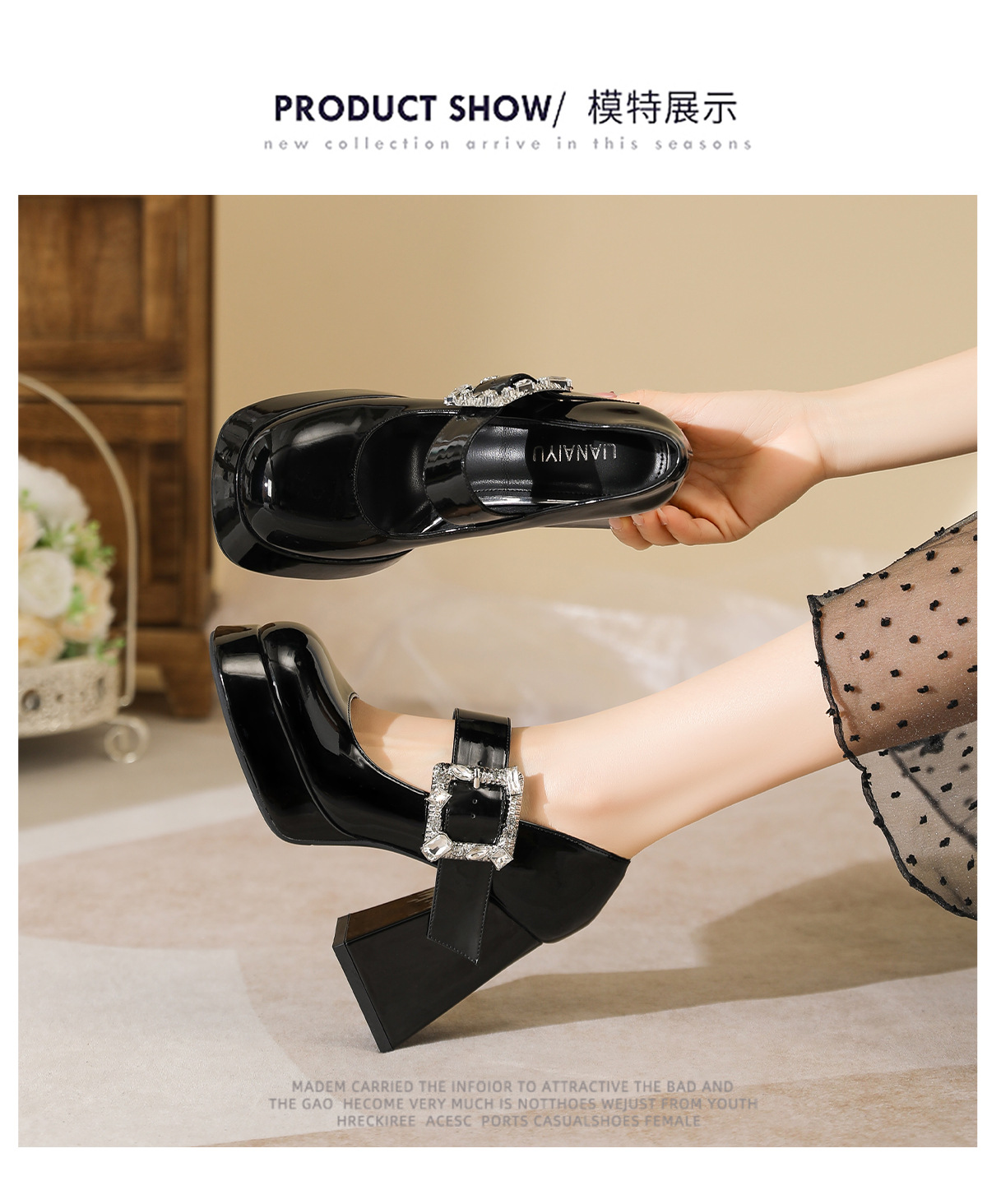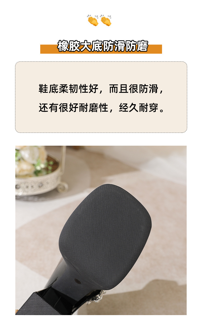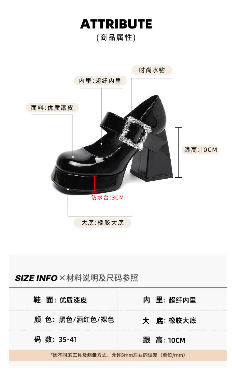 339-1 라운드 토 신형 페이턴트 가죽 라인스톤 원라인 두꺼운 굽 하이힐 여성용 방수 플랫폼 슈즈, 다용도 크로스보더 슈즈스토어 가기