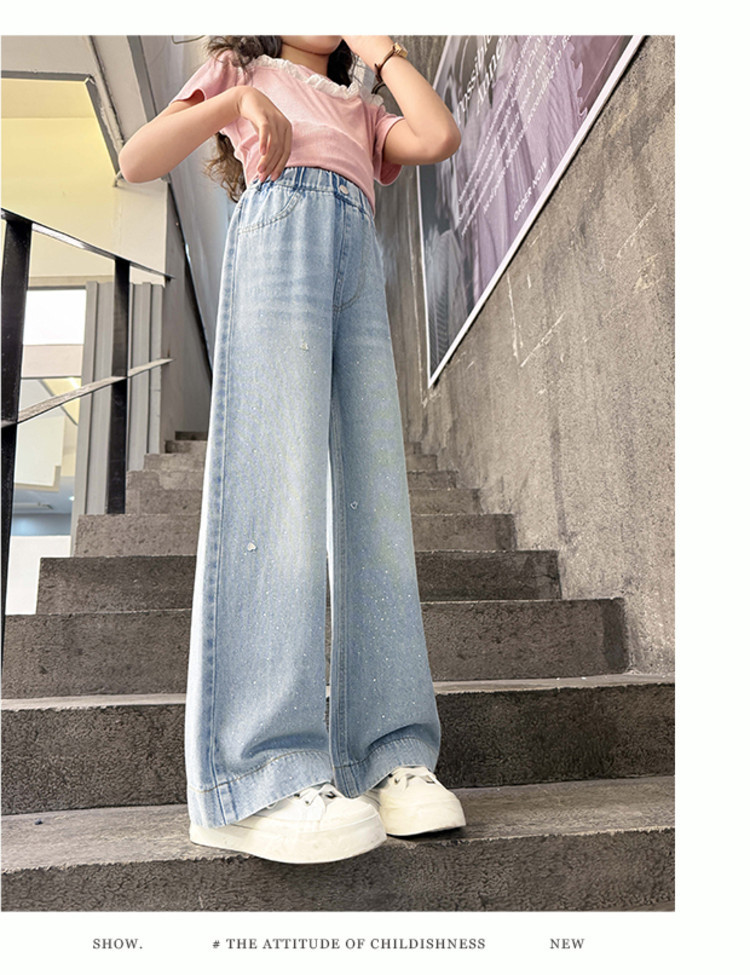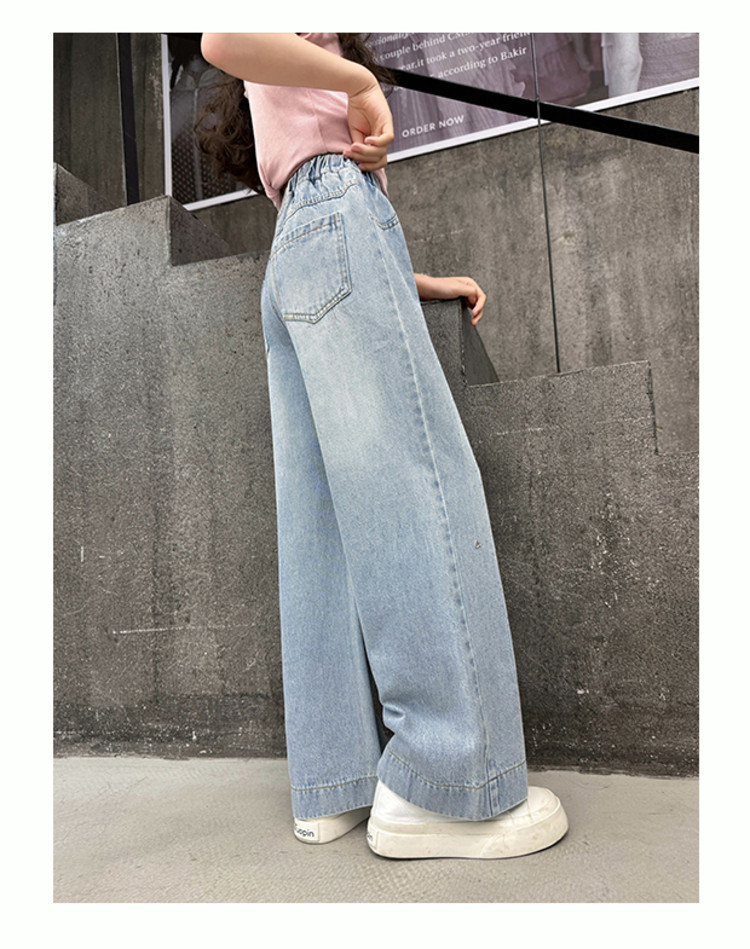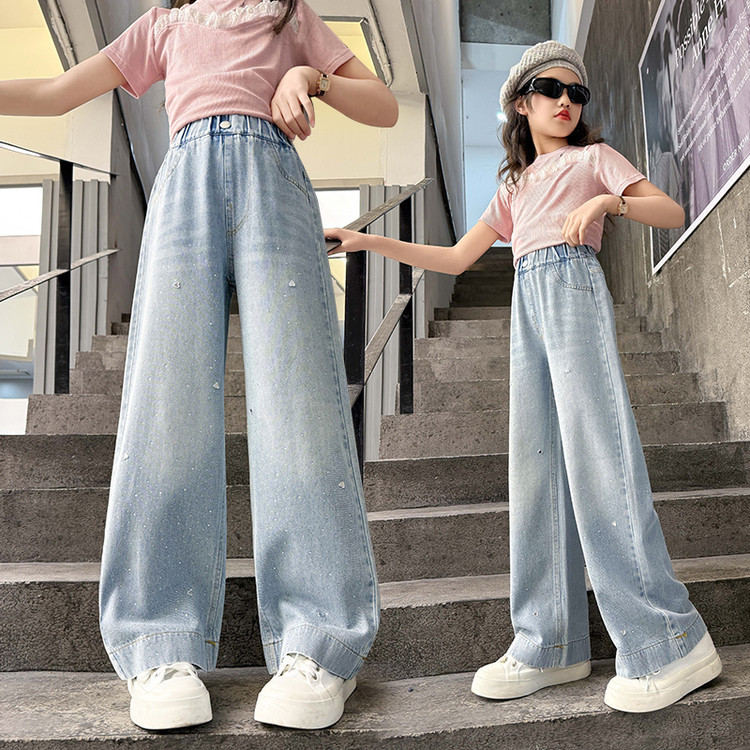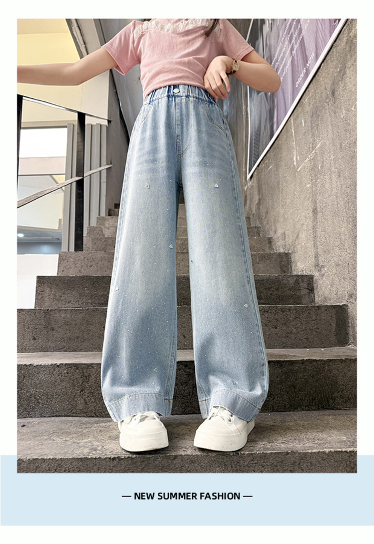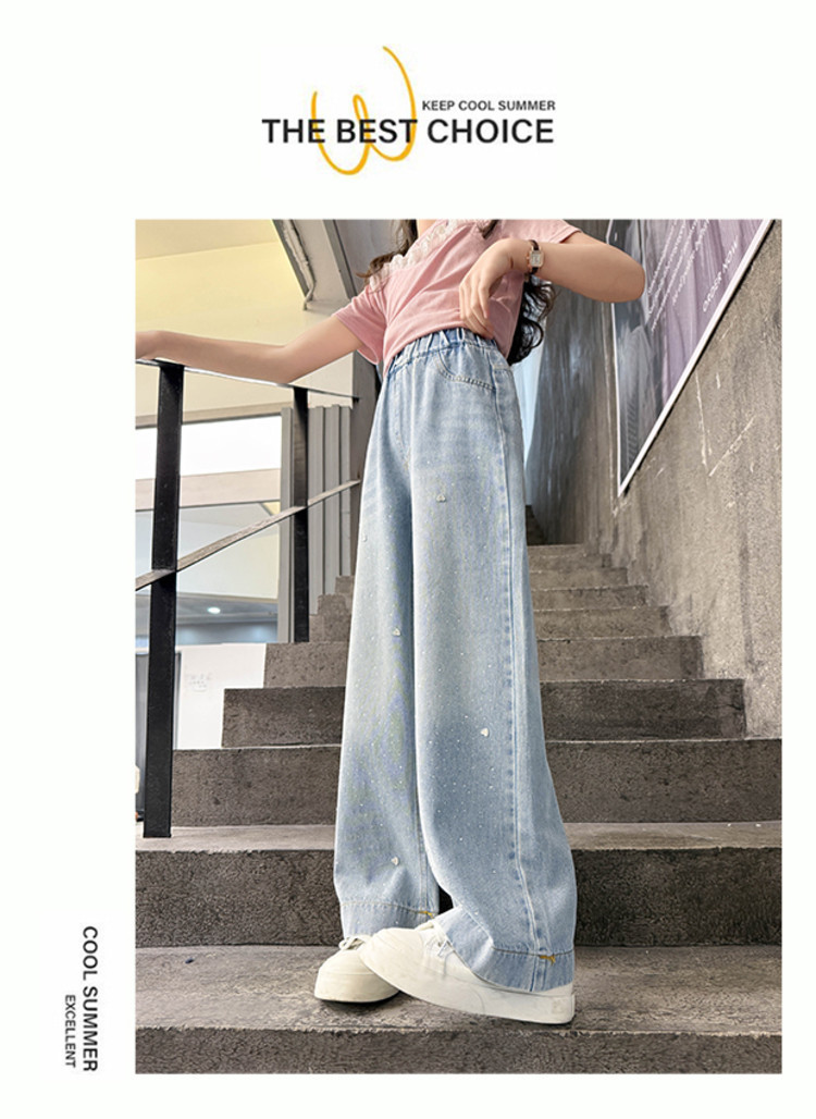 소녀 바지 여름 얇은 대형 어린이 여름 올 매치 와이드 레그 바지 어린이 서양식 텐셀 데님 캐주얼 바지