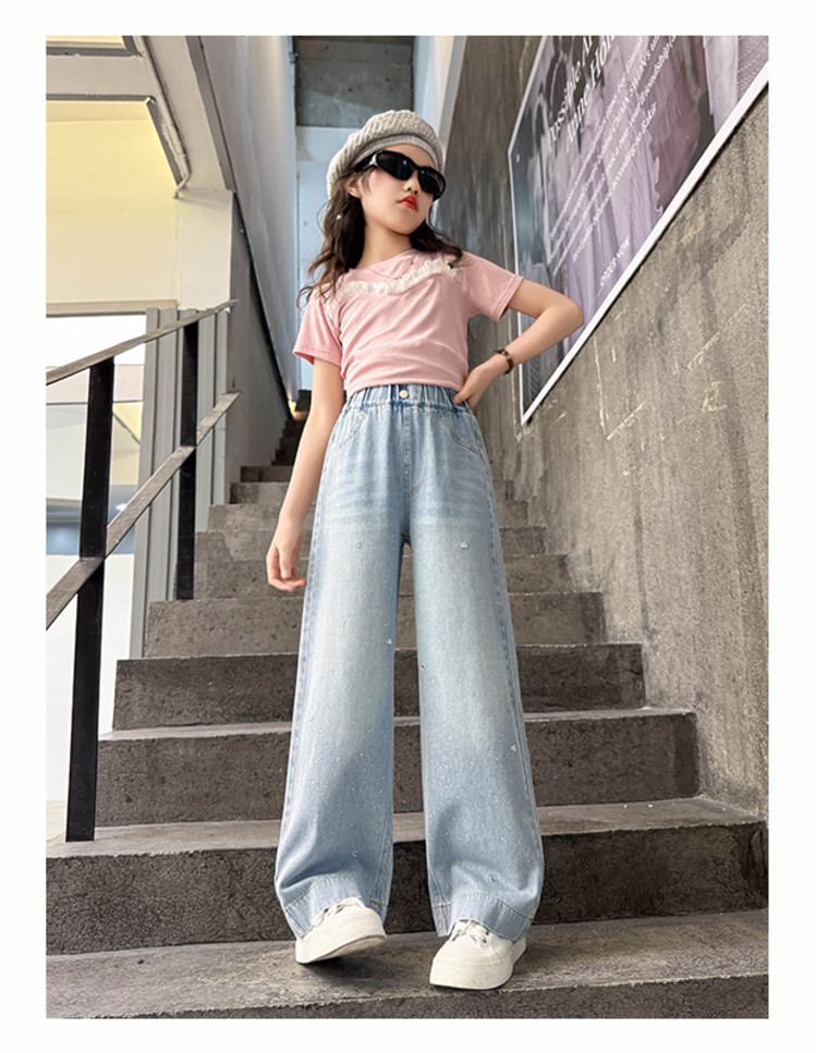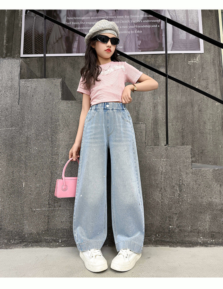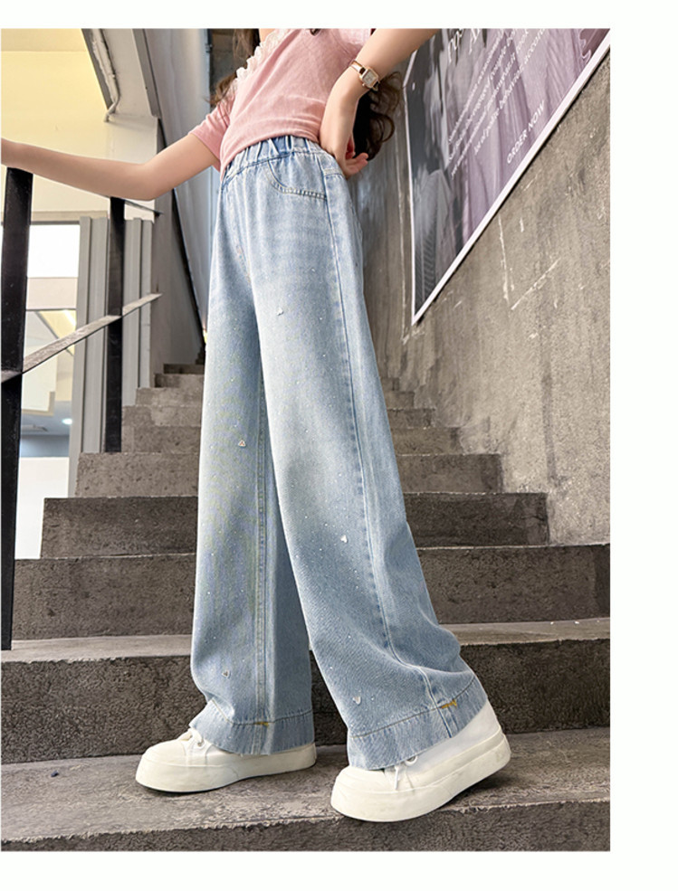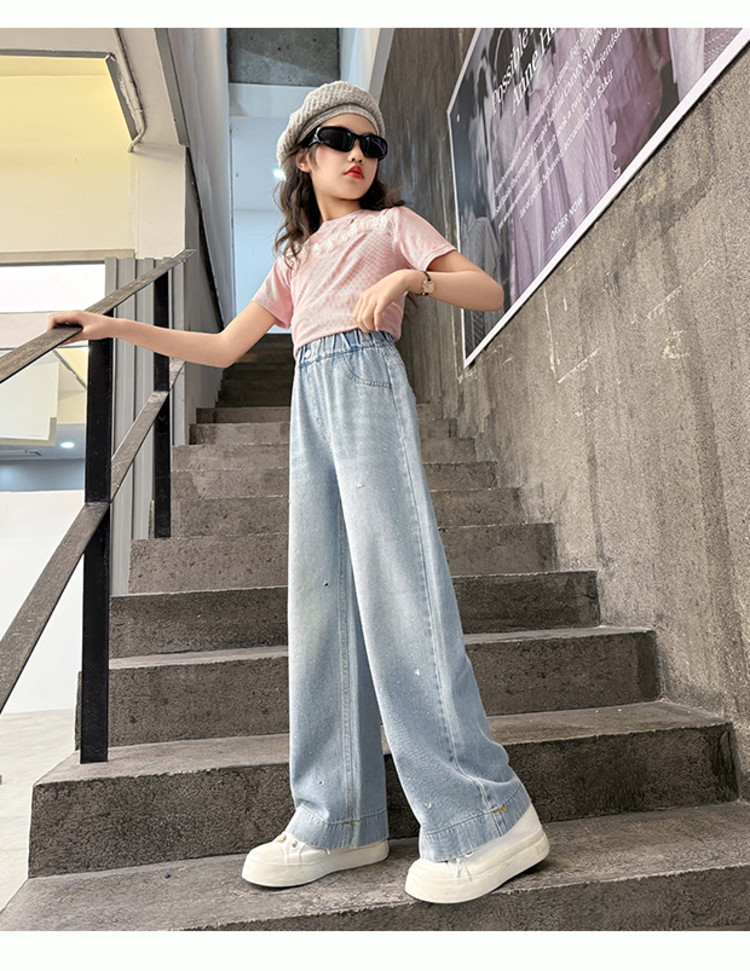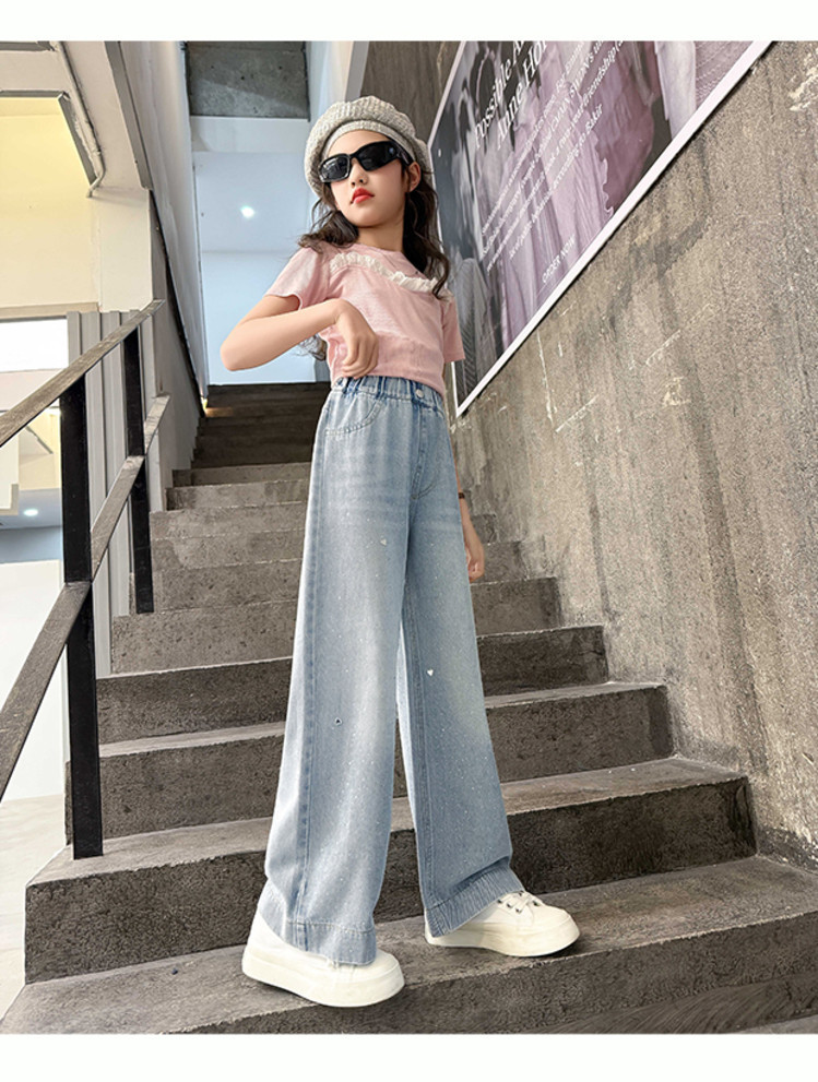 소녀 바지 여름 얇은 대형 어린이 여름 올 매치 와이드 레그 바지 어린이 서양식 텐셀 데님 캐주얼 바지