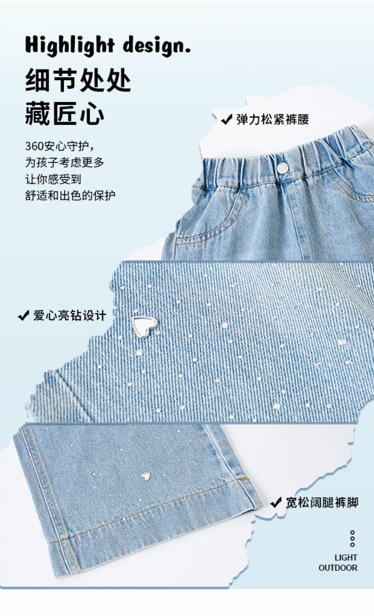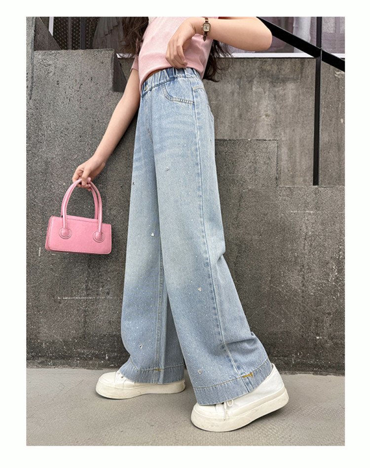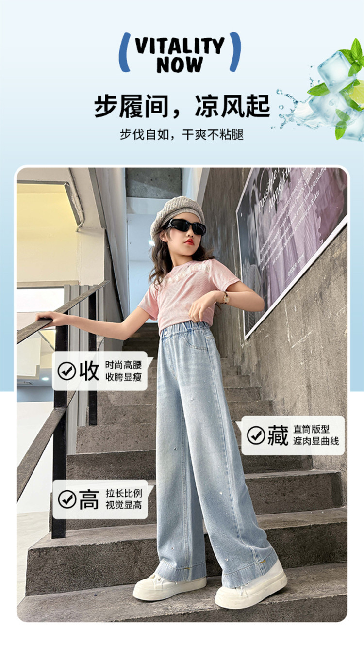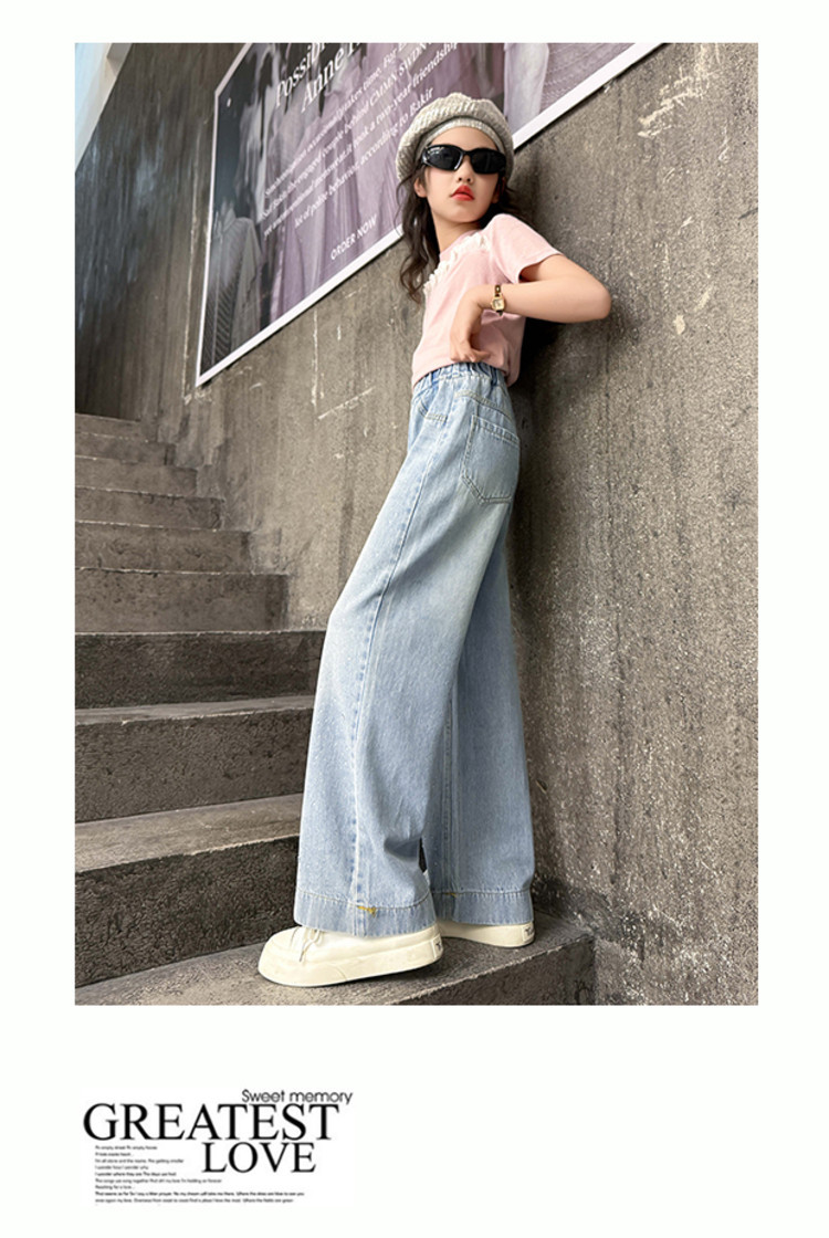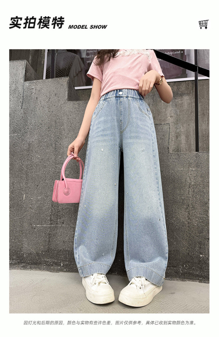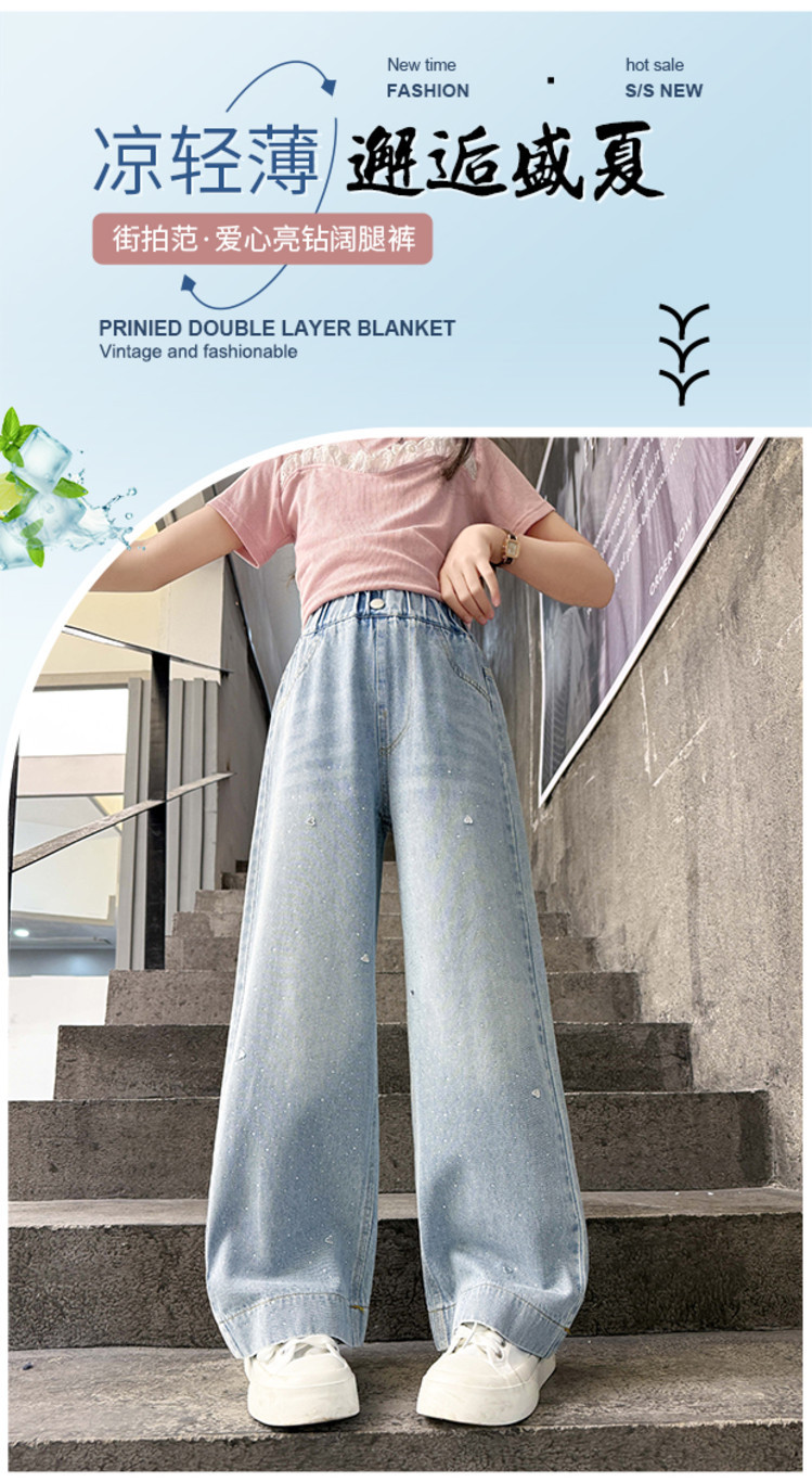 소녀 바지 여름 얇은 대형 어린이 여름 올 매치 와이드 레그 바지 어린이 서양식 텐셀 데님 캐주얼 바지스토어 가기