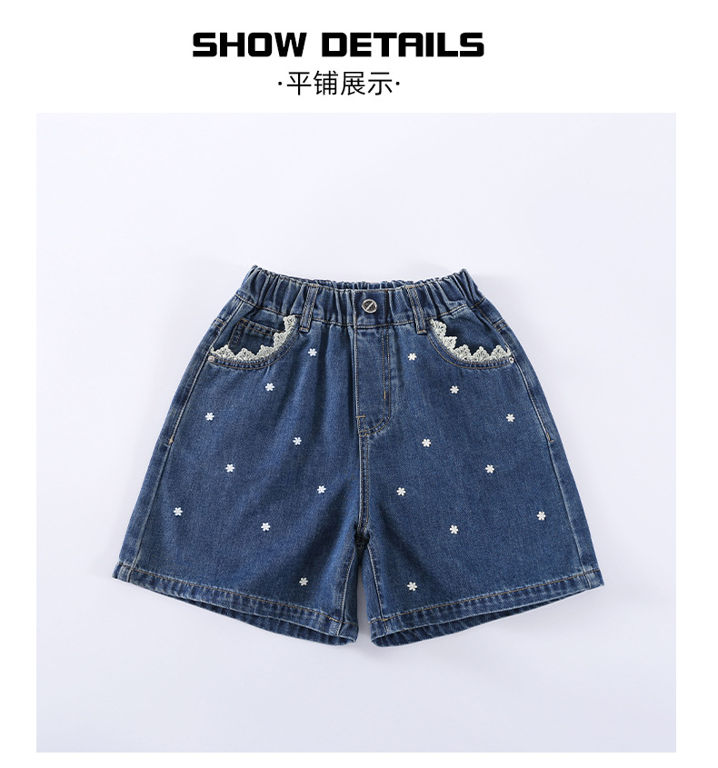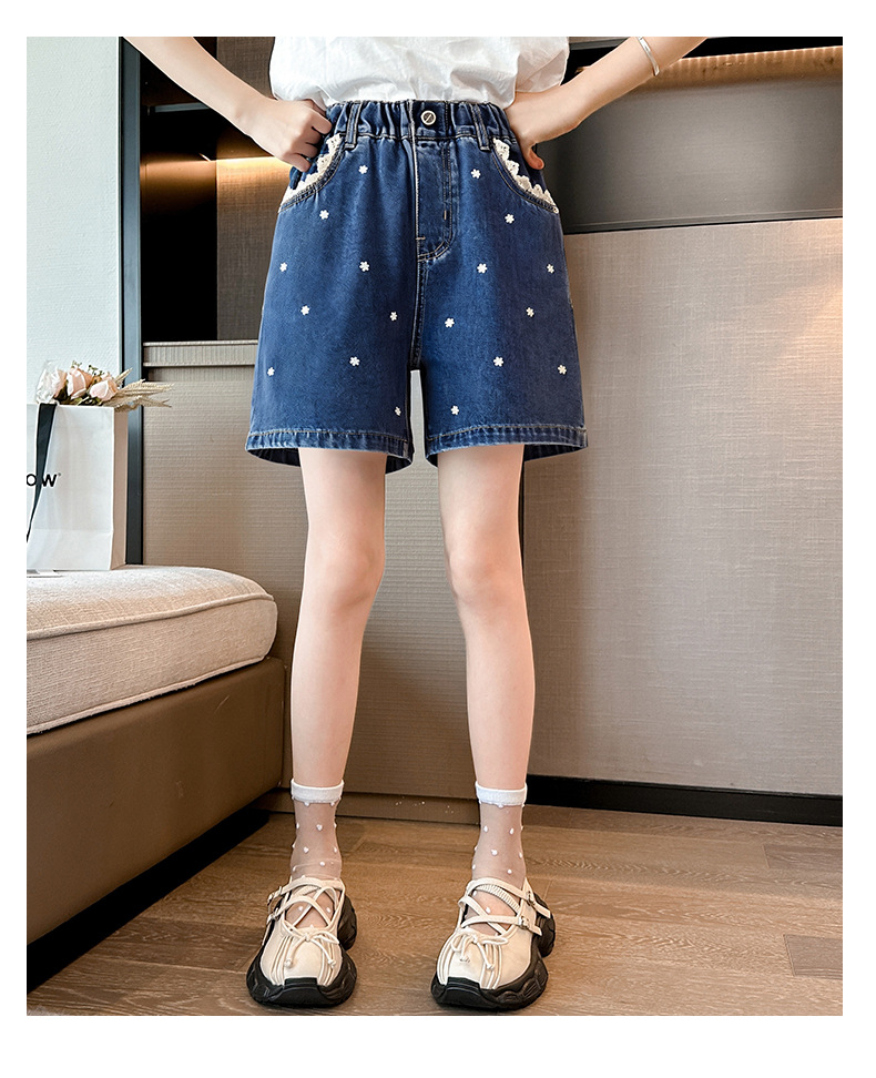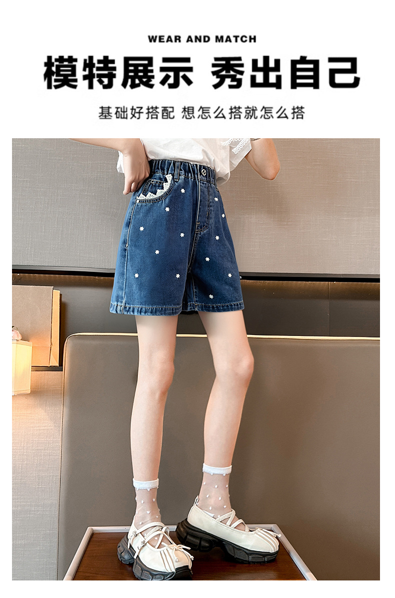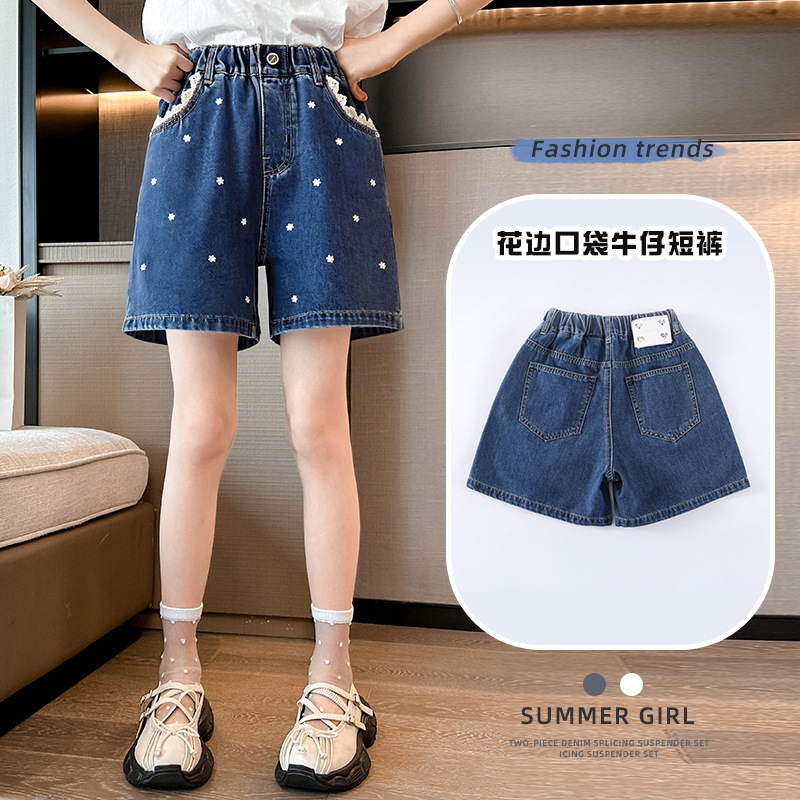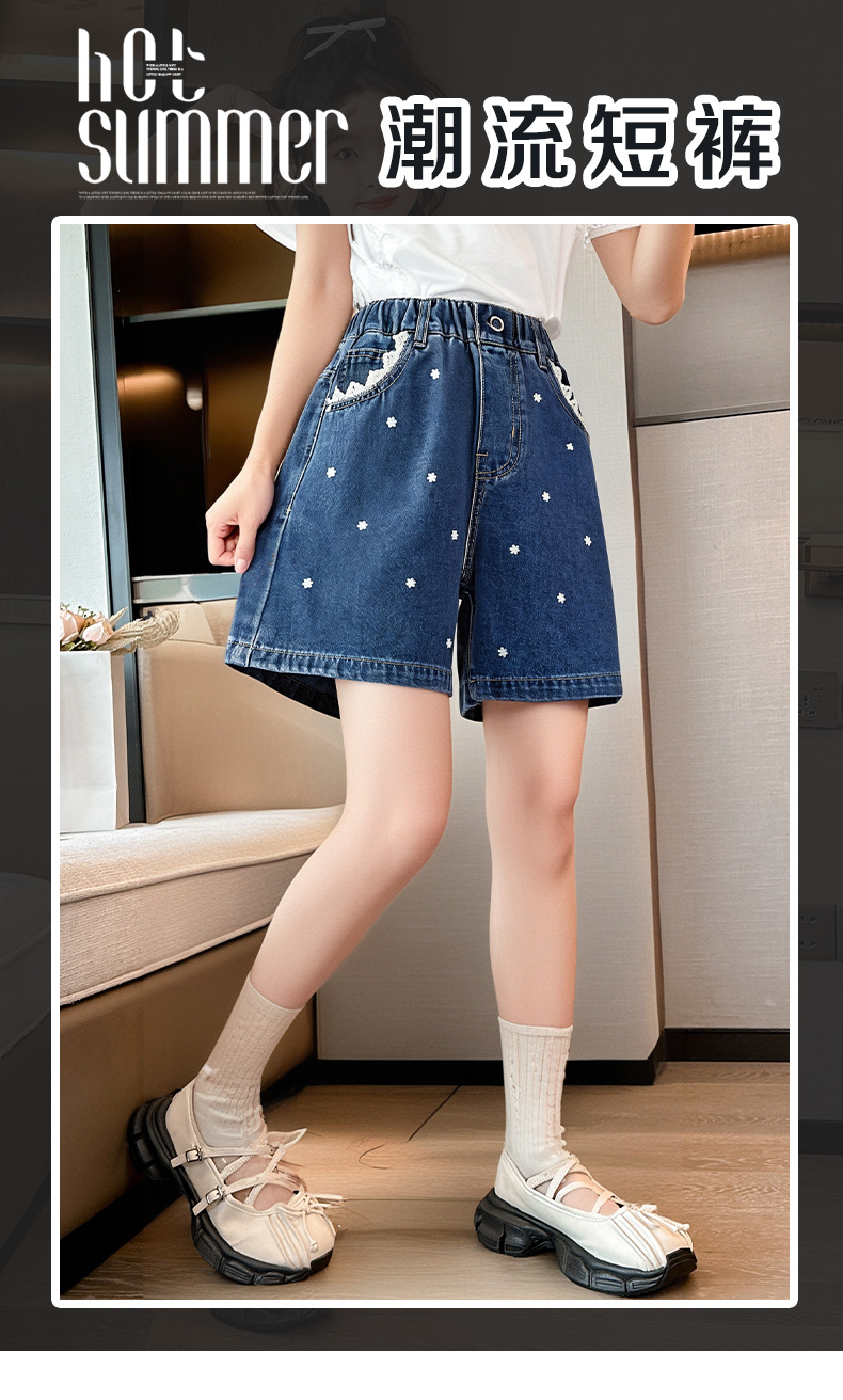 오렌지 타이거 걸스 여름 반바지 2025 새로운 세련된 어린이 소녀 큰 아이들 여름 유행 자수 외주 짧은스토어 가기