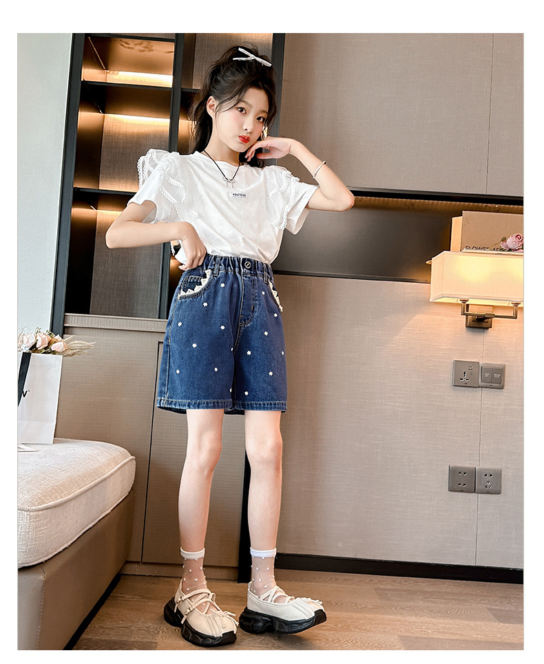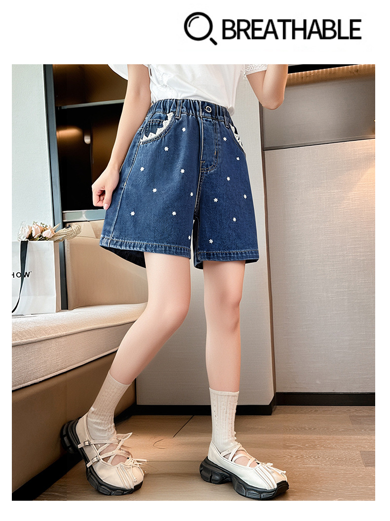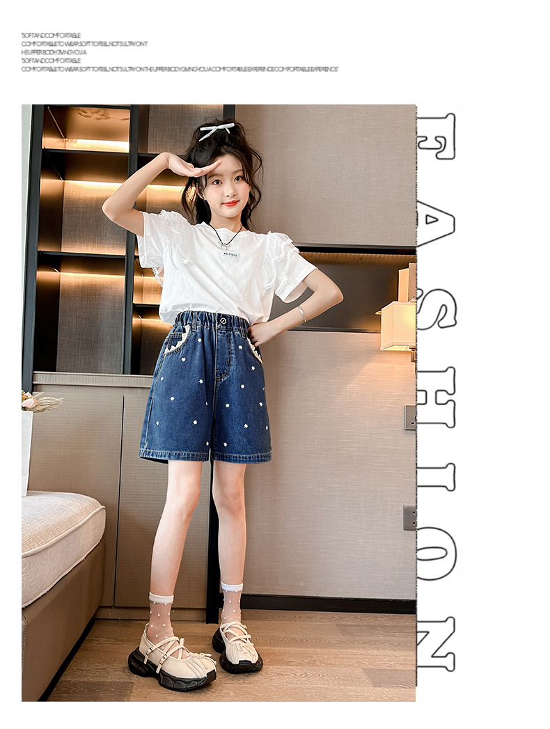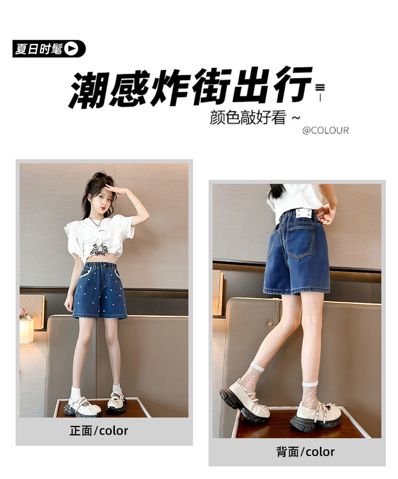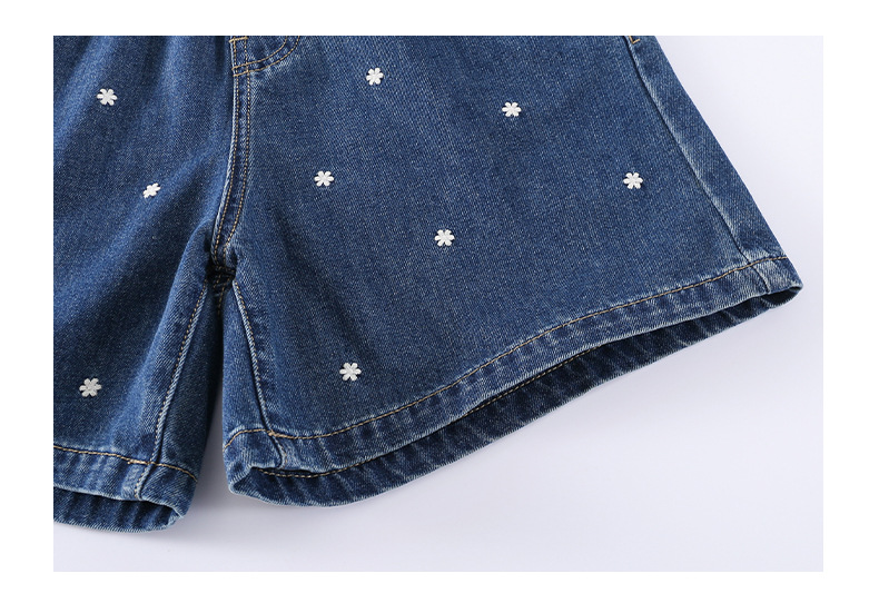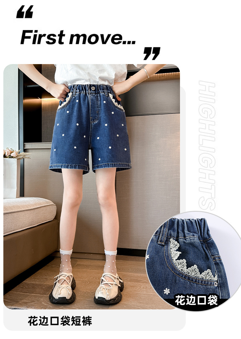 오렌지 타이거 걸스 여름 반바지 2025 새로운 세련된 어린이 소녀 큰 아이들 여름 유행 자수 외주 짧은스토어 가기
